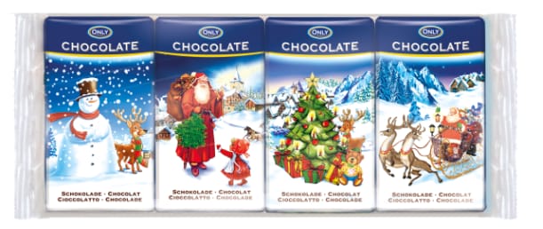 Poczuj świąteczną radość z każdym kęsem pysznej mlecznej czekolady w uroczym, bożonarodzeniowym wydaniu. Cztery małe batoniki o kremowym smaku zamknięte w świątecznych wzorach to idealny sposób, by wprowadzić atmosferę ciepła i słodyczy.