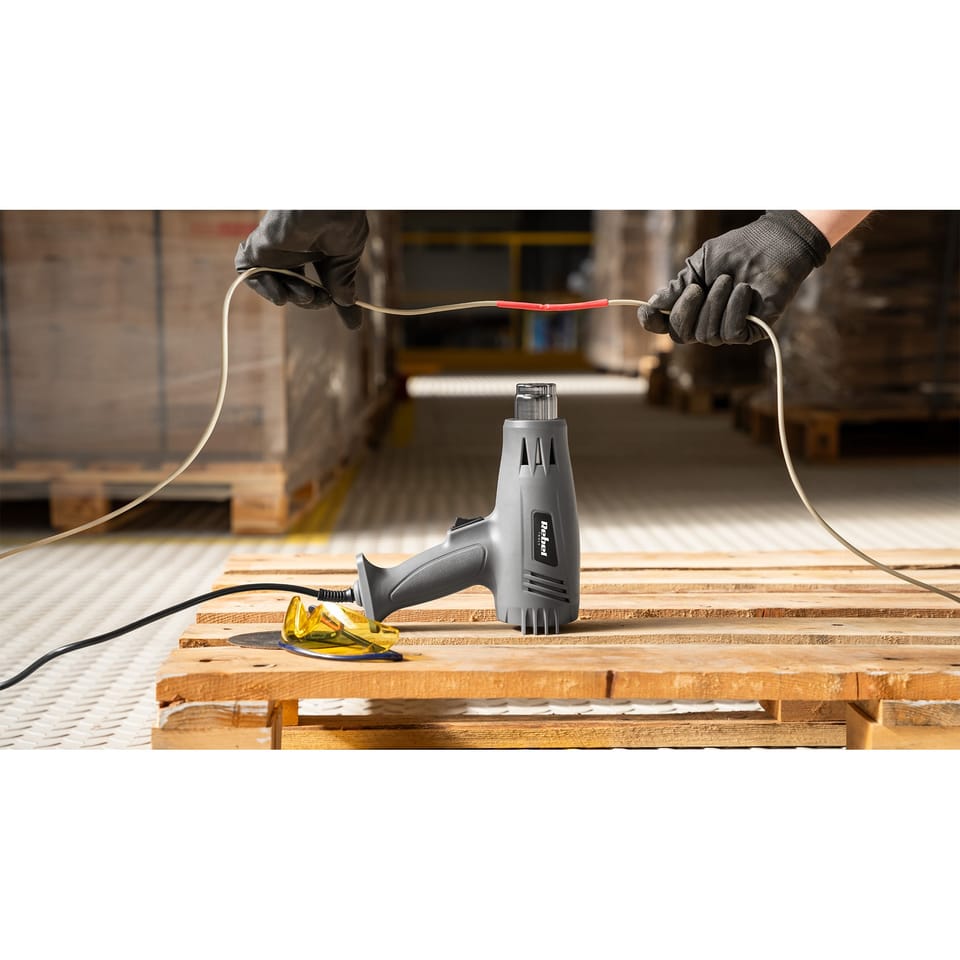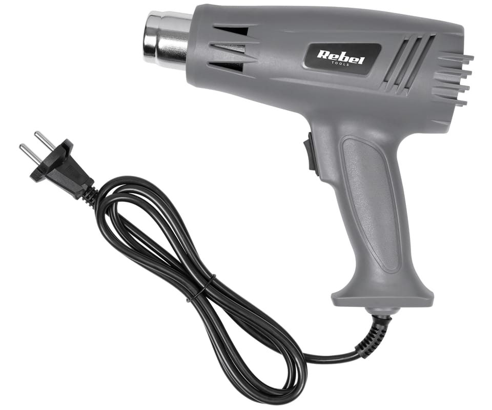 Dwa ustawienia temperatury i przepływu powietrzaPraca w pionieErgonomiczna rękojeśćLekka konstrukcja ----------DANE TECHNICZNE----------Moc: 1600 WZasilanie: 220-240 V; 50-60 HzDługość kabla zasilającego 1,5mWaga: 0,6kgTemperatura/przepływ powietrza: • Poziom 1: 350°C / 300 l/min • Poziom 2: 600°C / 500 l/min
