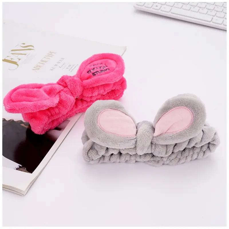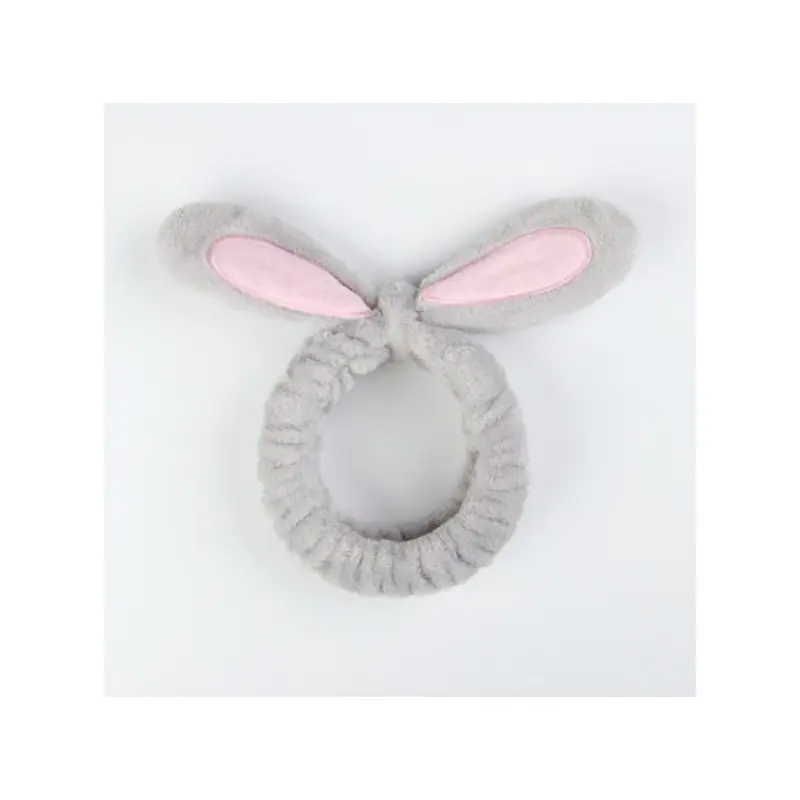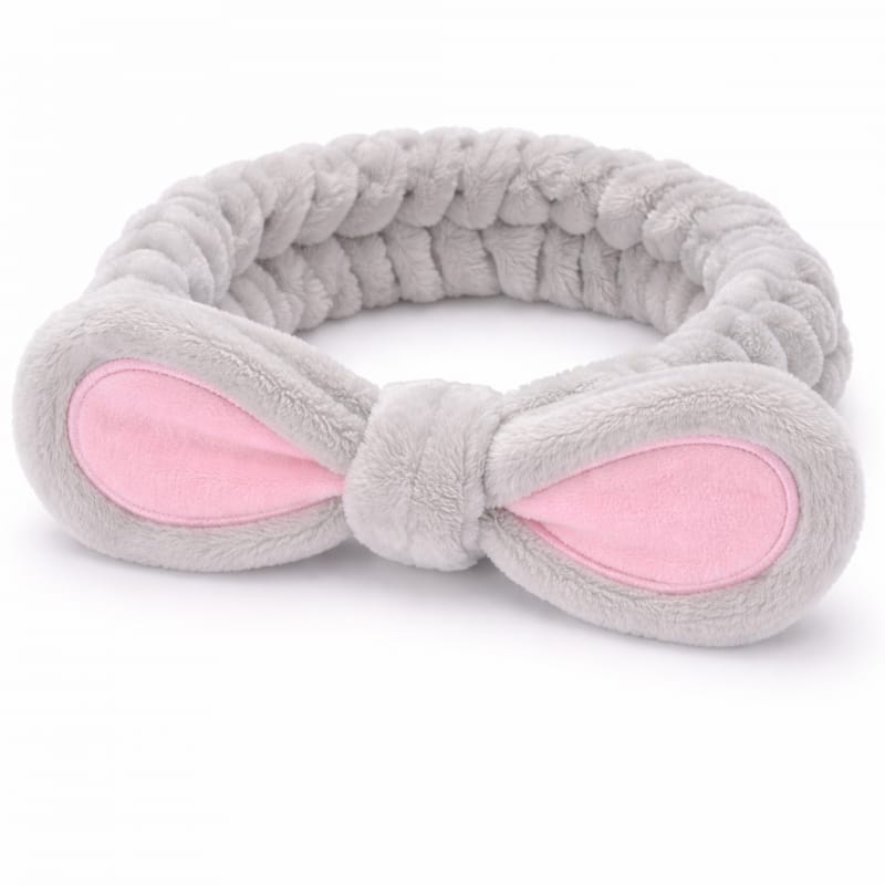 Opaska kosmetyczna uszka ozdobna, szara z różem O231SZ