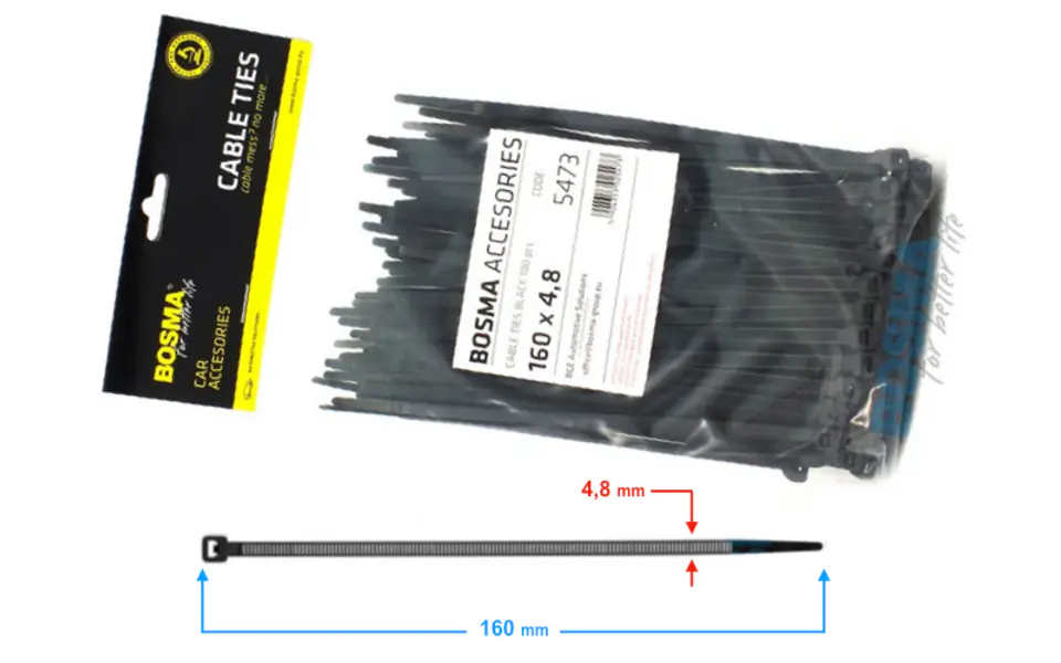 Opaska zaciskowa (tzw. trytytka) o długości 160mm i szerokości 4,8mm. Kolor czarny. 100 sztuk w opakowaniu.