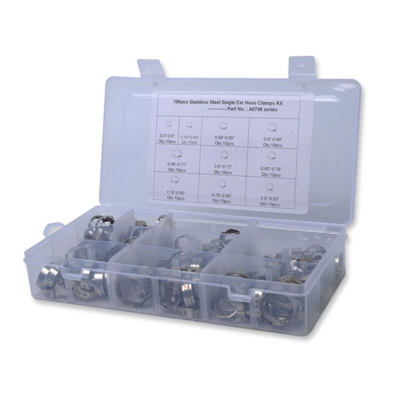 Opaski obejmy zaciski zaciskowe z pojedynczym uchem do węży bezstopniowe 100 sztuk 12,8 - 23,5mm