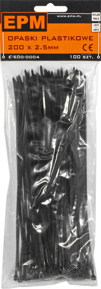 OPASKI PLASTIKOWE PA6.6 100SZT. CZARNE 100*2.5