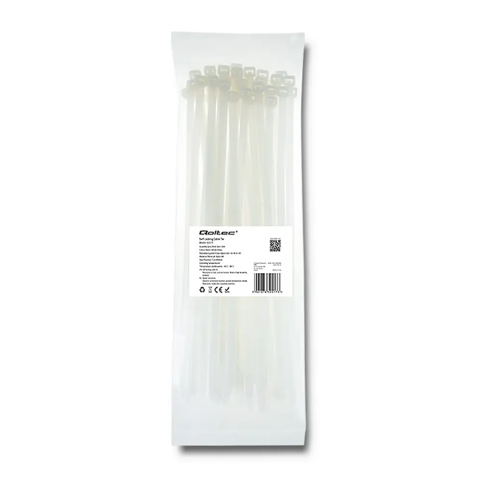 Opaski zaciskowe 7.2x300mm, nylon UV, 50szt., białe