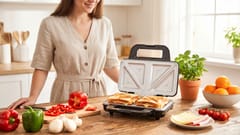 Opiekacz na 2 kanapkiWskaźnik zasilaniaWskaźnik gotowości do pracyNienagrzewający się uchwytPowłoka ceramicznaOchrona przed przegrzaniemObudowa z tworzywa sztucznegoKontrola termostatycznaAntypoślizgowe stopkiPrzechowywanie w pozycji pionowejMoc maksymalna: 900 WZasilanie: 220 ~ 240 V; 50/60 HzDługość przewodu: 69 cmWaga: 1,6 kgWymiary: 244 x 263 x 103 mm