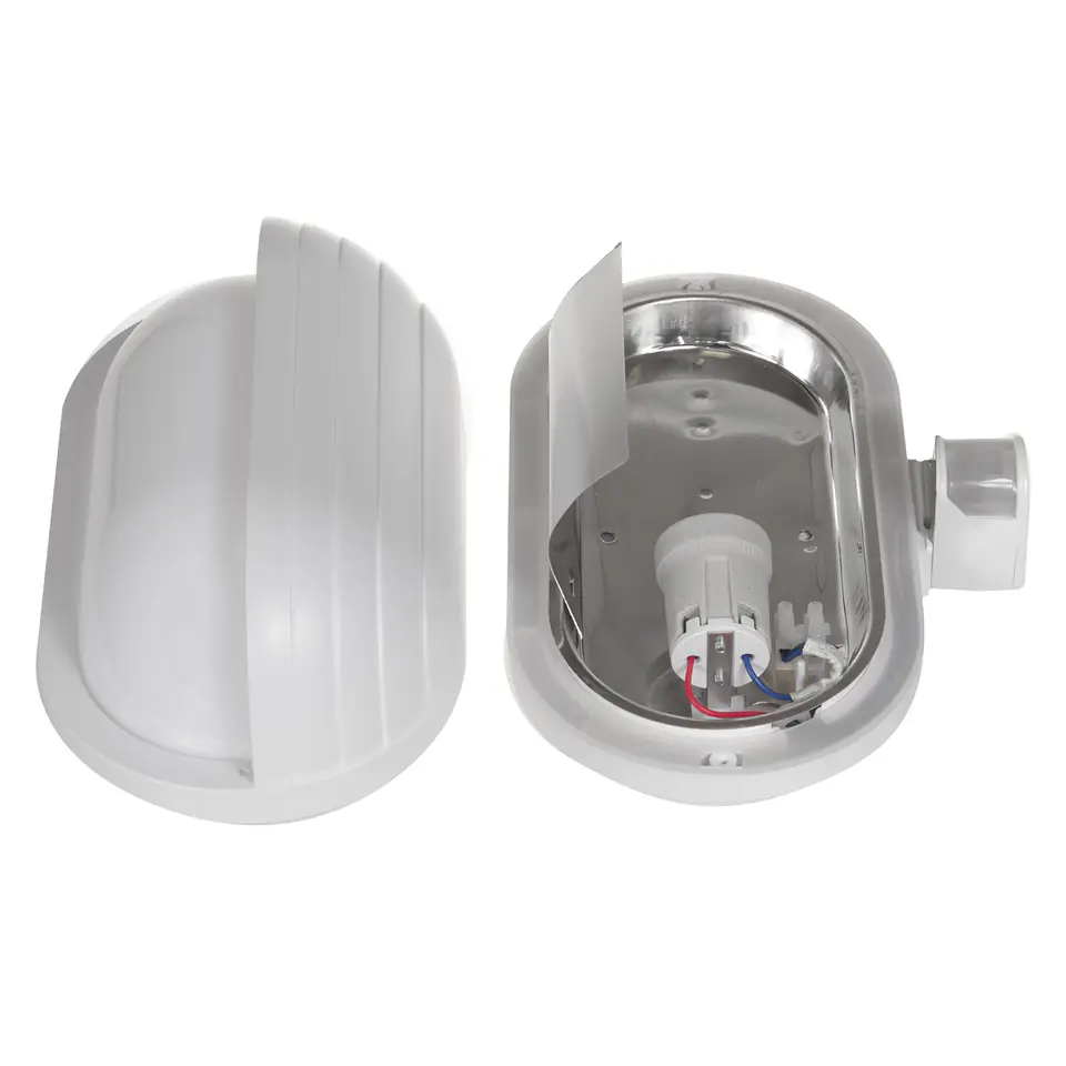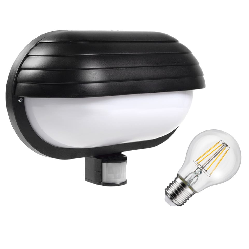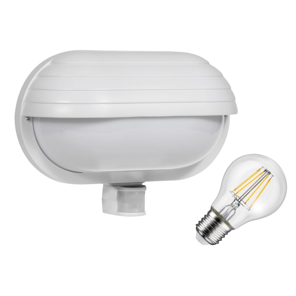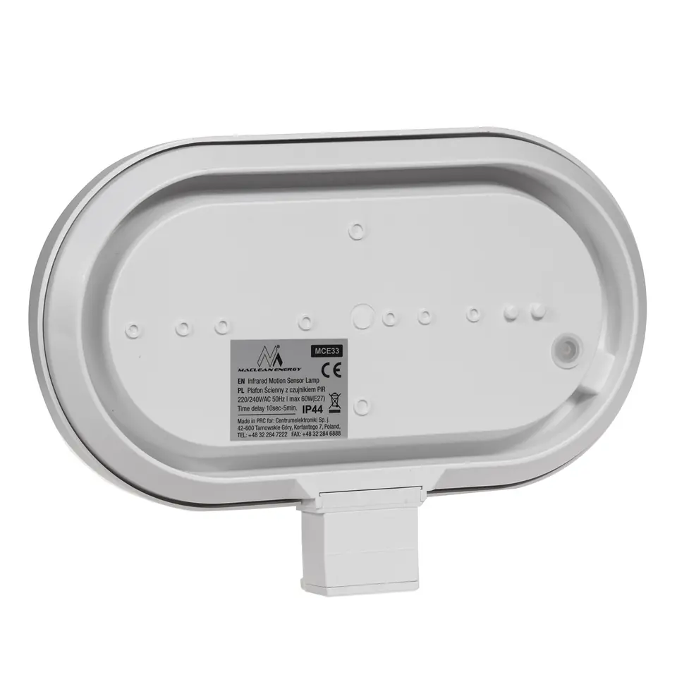 - Zasięg maksymalny: 9 m (Zakres czułości oświetlenia: Stopień ochrony: IP44 (UWAGA! Lampa nie może być narażona na bezpośredni kontakt z opadami atmosferycznymi!)Temperatura pracy: -20/+40°CZakres czasu oświetlenia: 10 sec do 5 minDziała też z żarówkami typu LEDZakres wilgotności pracy: Wysokość instalacji: 1.8-2 mMaksymalna moc: 60 W (E27)Prędkość detekcji ruchu: 0.5-1.5 m/sWymiary: 265 x 185 x 100 mmŻarówka MCE268:Producent: Maclean EnergyRodzaj: żarówka LEDMoc: 8WNapięcie: 230VStrumień świetlny: 806lmBarwa światła: ciepła białaTemperatura barwowa: 3000KŻywotność: 50000hMocowanie: gwint E27
