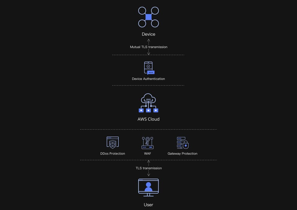DJI FlightHub 2 przesyła, przechowuje i zarządza danymi na serwerach w chmurze obsługiwanych przez Amazon Web Services, które są zgodne z certyfikatami bezpieczeństwa ISO/IEC 27001.