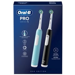 Oral-B | Elektryczna szczoteczka do zębów, zestaw Duo | Profesjonalna seria 1 | Akumulator | Dla dorosłych | Liczba główek szczoteczki w zestawie: 2 | Liczba trybów szczotkowania zębów 3 | Niebieski/