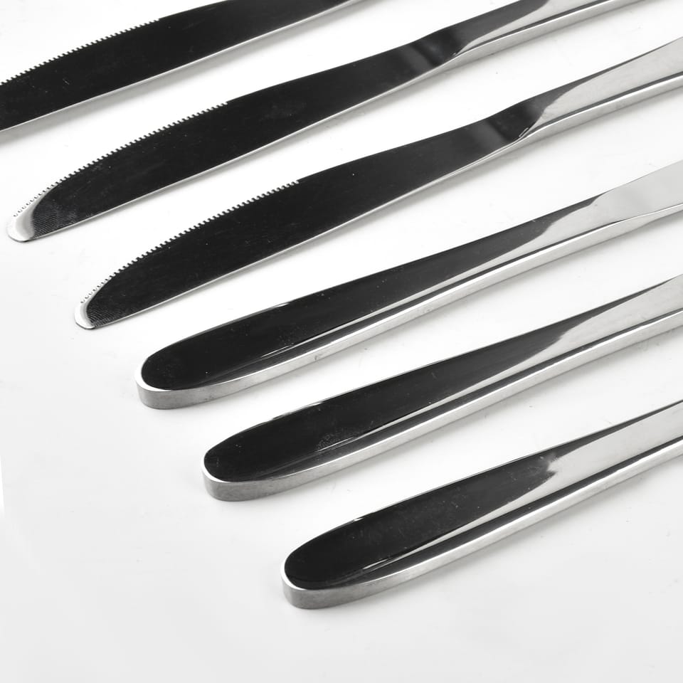 Komplet 6 noży TULIP o długości 22cm to praktyczne i estetyczne uzupełnienie każdej kuchni. Noże wykonane zostały z wysokiej jakości stali nierdzewnej, co zapewnia trwałość, odporność na korozję oraz długotrwałą ostrość. Ich uniwersalny rozmiar sprawia, że świetnie sprawdzają się do codziennego użytku . zarówno do krojenia warzyw, owoców, jak i mięsa czy pieczywa. Gładka powierzchnia ułatwia czyszczenie, a możliwość mycia w zmywarce czyni je wyjątkowo wygodnymi w codziennej pielęgnacji. Nowoczesny i elegancki wygląd noży TULIP sprawia, że będą one nie tylko funkcjonalnym, ale i stylowym dodatkiem do kuchni. długość: 22cm UżytkowanieZaleca się mycie ręczne w celu zachowania ich połysku. Używaj łagodnych detergentów i miękkich gąbek, aby uniknąć zarysowań.Suszenie: Po umyciu sztućców zaleca się dokładne ich osuszenie, aby uniknąćpowstawania plam wodnych, szczególnie w przypadku twardej wody.Używanie z kwaśnymi potrawami: Długotrwały kontakt ze silnie kwaśnymi potrawami(np. ocet, cytryna) może prowadzić do powstania przebarwień na powierzchni sztućców.Po użyciu z takimi produktami, sztućce należy szybko umyć