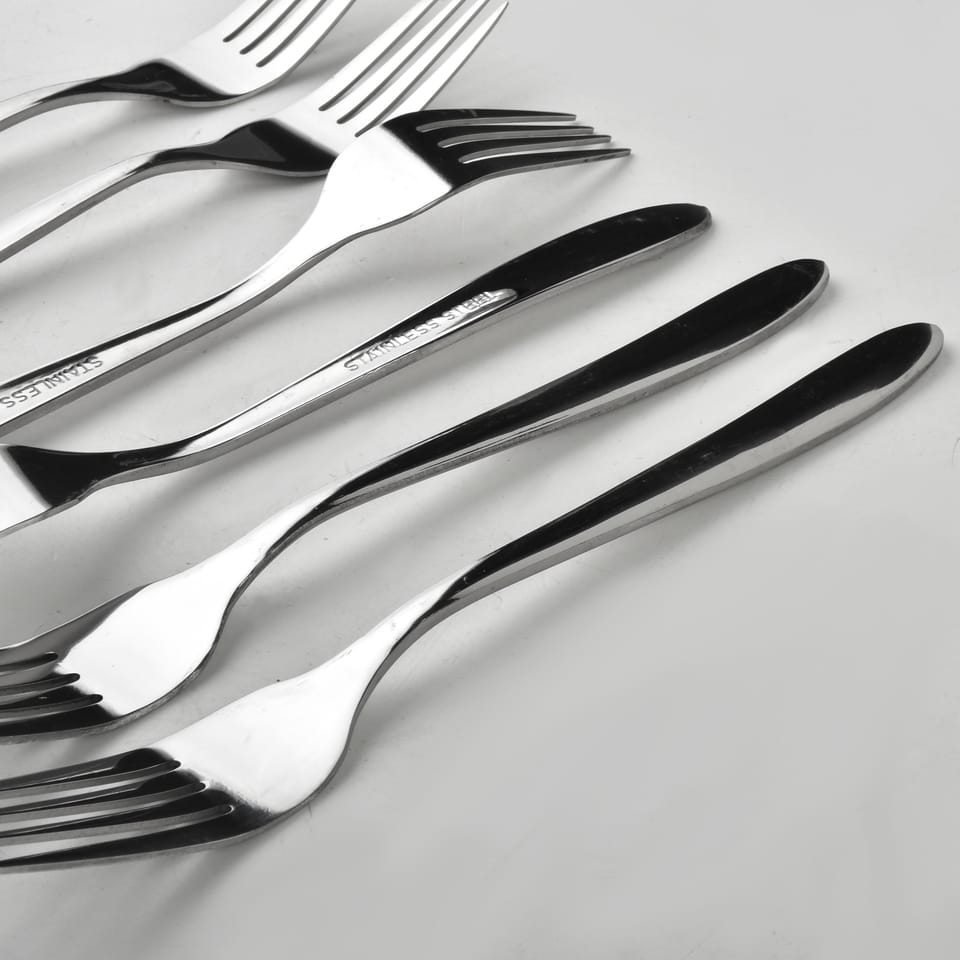 Komplet 6 widelców z serii ORCHID marki Allesken. Długość: 18,6cmUżytkowanie Zaleca się mycie ręczne w celu zachowania ich połysku. Używaj łagodnych detergentów i miękkich gąbek, aby uniknąć zarysowań. Suszenie: Po umyciu sztućców zaleca się dokładne ich osuszenie, aby uniknąć powstawania plam wodnych, szczególnie w przypadku twardej wody.