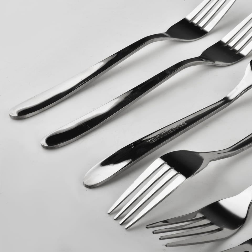 Komplet 6 widelców ORCHID o długości 20 cm to eleganckie i funkcjonalne uzupełnienie codziennej zastawy stołowej. Wykonane z wysokiej jakości stali nierdzewnej, widelce charakteryzują się trwałością, odpornością na zarysowania i korozję, a także estetycznym wykończeniem. Ich klasyczny kształt i wygodny uchwyt sprawiają, że doskonale leżą w dłoni i sprawdzają się zarówno podczas codziennych posiłków, jak i przy specjalnych okazjach. Możliwość mycia w zmywarce zapewnia łatwą i wygodną pielęgnację, co czyni zestaw ORCHID praktycznym wyborem do każdej kuchni.Użytkowanie Zaleca się mycie ręczne w celu zachowania ich połysku. Używaj łagodnych detergentów i miękkich gąbek, aby uniknąć zarysowań. Suszenie: Po umyciu sztućców zaleca się dokładne ich osuszenie, aby uniknąć powstawania plam wodnych, szczególnie w przypadku twardej wody.