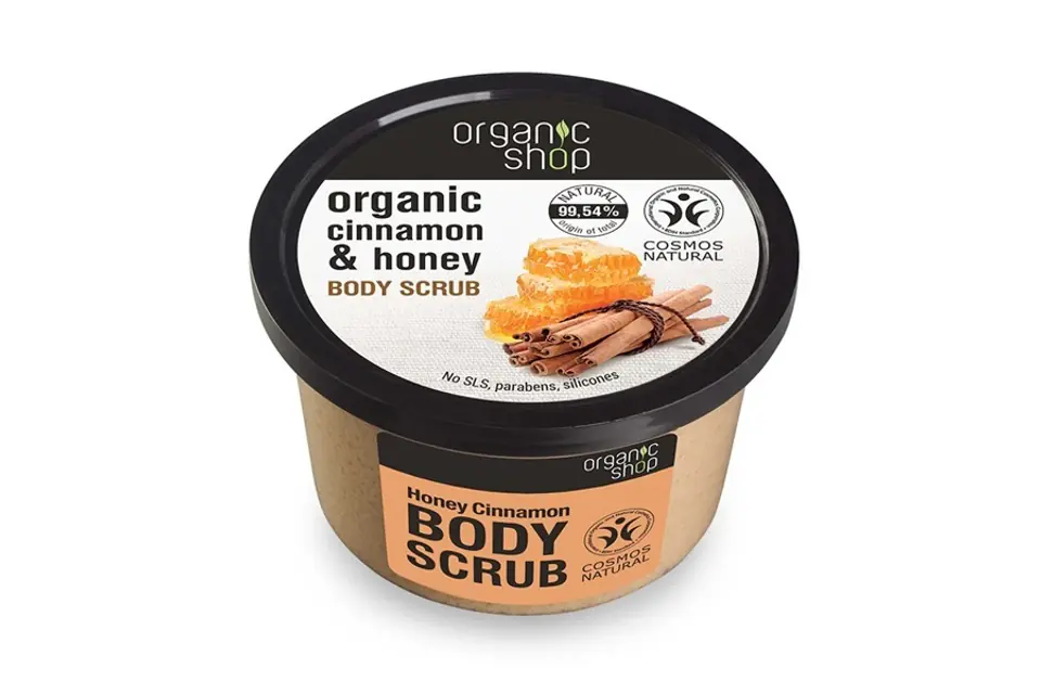 Organiczny peeling do ciała Organic Shop Cynamon i Miód podaruje skórze wspaniałe uczucie, ciepło i troskę. Sercem produktu są certyfikowane organiczne składniki, zawarty miód nasyca skórę witaminami, odnawia i regeneruje, a cynamom działa kojąco. Peeling przeznaczony do pielęgnacji wszystkich typów skóry, w tym skóry wrażliwej. Zawiera 99,54% składników pochodzenia roślinnego.Produkt nie zawiera parabenów i silikonów. Sposób użycia: nanieść na wilgotną skórę lekkimi masującymi ruchami. Delikatnie wmasowywać przez kilka minut następnie zmyć ciepłą wodą.