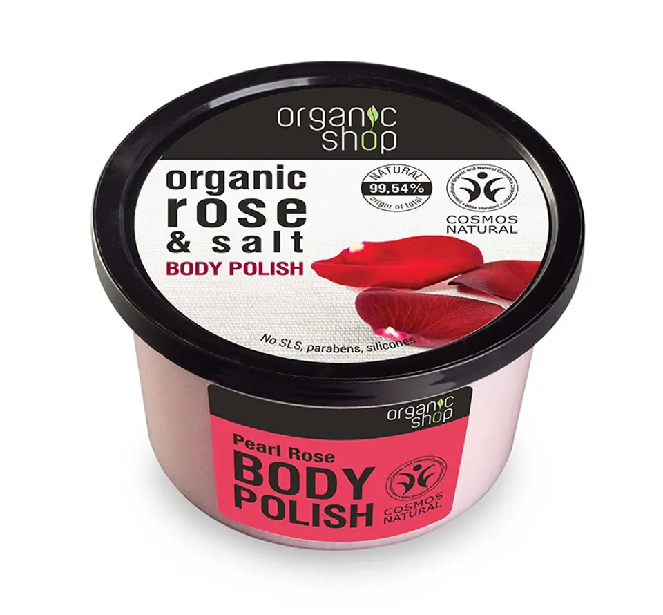 Organiczny Peeling do ciała Perłowa Róża zawiera doskonałe połączenie organicznego oleju z róży i naturalnej soli. Peeling przywraca i odnawia skórę, nadając jej niesamowitą elastyczność, sprawia że skóra odzyskuje swój koloryt. Zawiera 99,54% składników pochodzenia roślinnego. Zawarta morska sól działa przeciwzapalnie, tonizuje i zwilża skórę, ujędrnia i wygładza nierówności, oczyszcza i poprawia krążenie. Zawiera cenne dla skóry mikro i makro elementy. Olejek z róży głęboko odżywia i nawilża.
