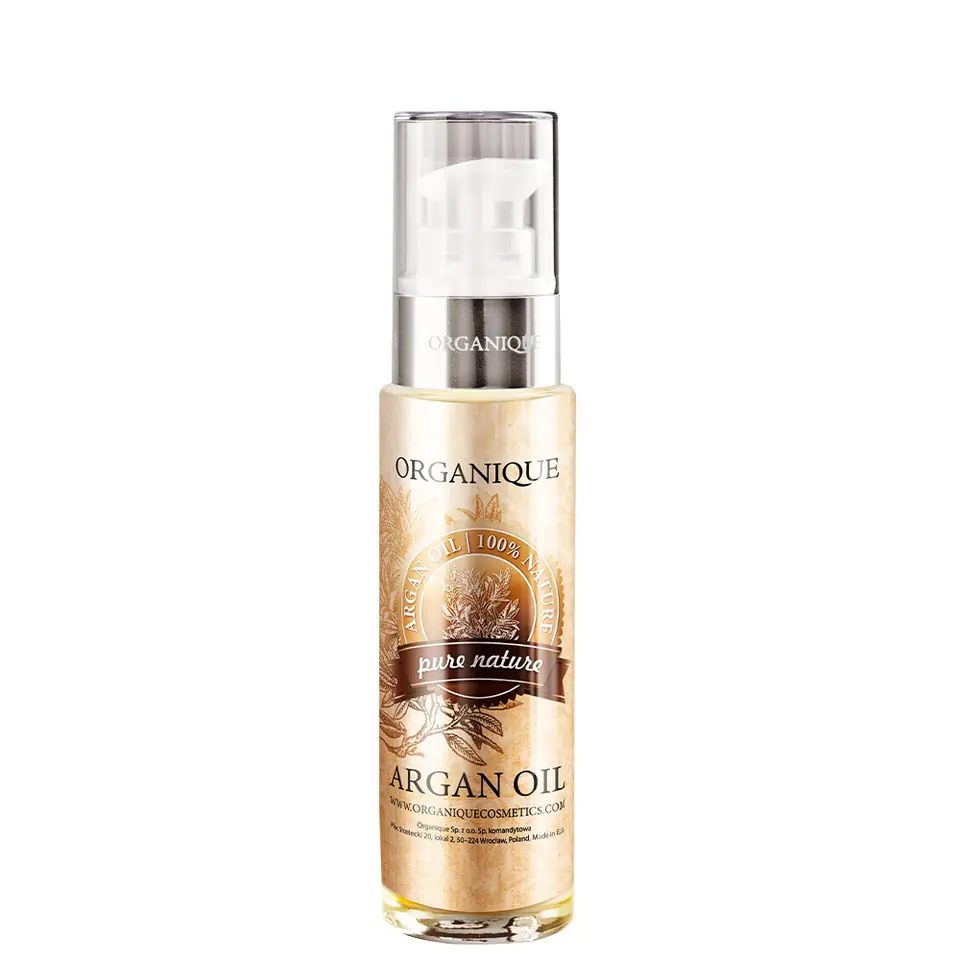 Organiczny olej z ECOCERTEM wytwarzany w fabryce Marogani (Maroko) w sercu lasu drzew arganowych. Tłoczony na zimno, pozbawiony konserwantów. Ze względu na swoje działanie, jest najbardziej cenionym olejem na świecie, zwany również „złotem Maroka”. Zawiera bogactwo nienasyconych kwasów tłuszczowych, witamin E i F, kwasu linolowego i fitosteroli, co czyni go skutecznym kosmetykiem do pielęgnacji każdego rodzaju cery. Polecany szczególnie dla wymagającej i wrażliwej skóry jak również włosów i paznokci. Olej głęboko odżywia, nawilża i zmiękcza, chroni przed procesami starzenia, poprawia elastyczność, przez co również zapobiega powstawaniu rozstępów.