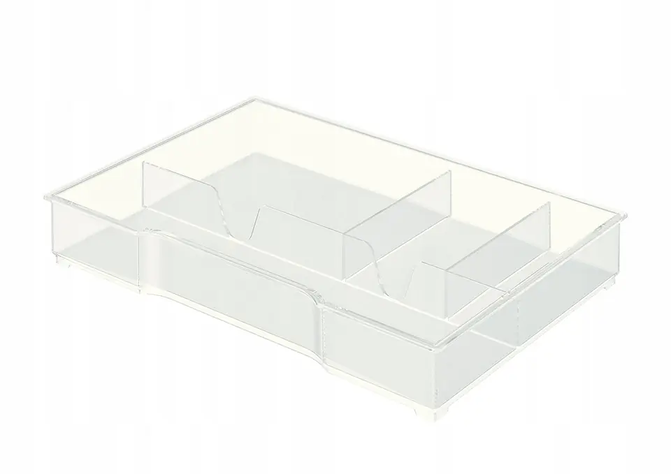 Uporządkuj zawartośc szuflad w pojemniku z szufladami dzieki uzytecznemu dodatkowi w przezroczystym kolorze.