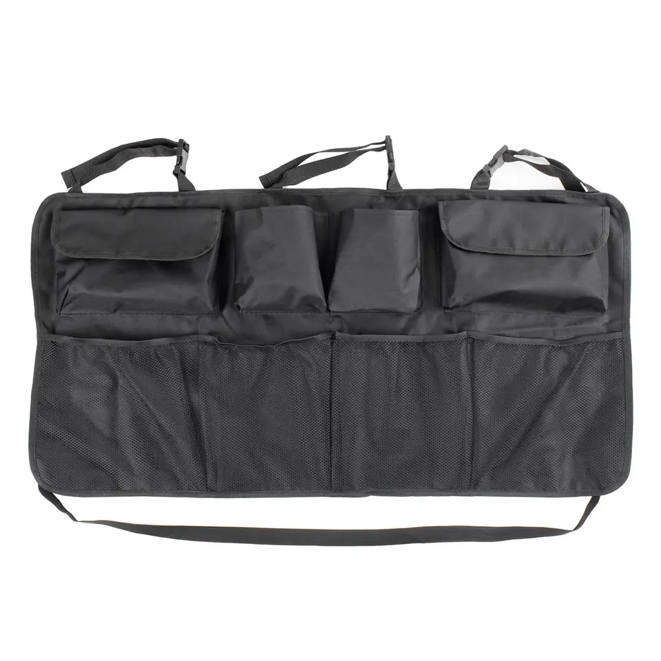Organizer do bagażnika samochodowego montowany na oparciach w bagażniku samochodu, dzięki któremu zadbasz o porządek w swoim samochodzie. Cechy produktu: Uniwersalna torba, organizer do bagażnika umożliwiająca zapanować nad bałaganem i latającymi zakupami. Niezwykła pojemność - podzielona na 8 niezależnych komór - pozwala na uporządkowanie bagażu podczas codziennych wyjazdów. Wodoodporność dzięki materiałowi D600 - Twój bagaż będzie bezpieczny, a organizer trwały - wystarczy przetrzeć go wilgotną szmatką jeśli zajdzie taka potrzeba. Organizer można złożyć aby zajmował mniej miejsca . SPECYFIKACJA: Stan: nowy Kolor: czarny Materiał: tworzywo sztuczne Ilość kieszeni: 8 różnej wielkości Szerokość: 89 cm Wysokość: 46 cm Kieszenie: 2 zapinane na rzep: 24 cm x 15 cm 2 wsuwane: 13 cm x 15 cm 2 kieszenie z siatki: 23 cm x 23 cm 2 kieszenie z siatki: 19 cm x 23 cm Informacje dodatkowe: Odporny na zadrapania Regulowany pasami Wodoodporny Wytrzymałe siateczki z tkaniny typu "mesh"