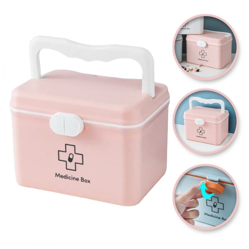 Praktyczny pojemnik na lekarstwaKoniec z bałaganem! Z naszym pojemnikiem zorganizujesz swoją domową apteczkę. Wreszcie wszystkie leki i produkty medyczne będą ułożone i schowane w jednym miejscu. Box jest duży i pojemny. Zmieści nie tylko opakowania z lekami ale także inne artykuły medyczne jak: bandaże, opatrunki, termometr itp.Dzięki wysuwanym półkom możesz w szybki i wygodny sposób posegregować swoje medykamenty.Przekręć pokrętło w lewo aby otworzyć pudełko. To bardzo proste! Wymiary:21 x 15 x 15,5 cm Waga:328 g