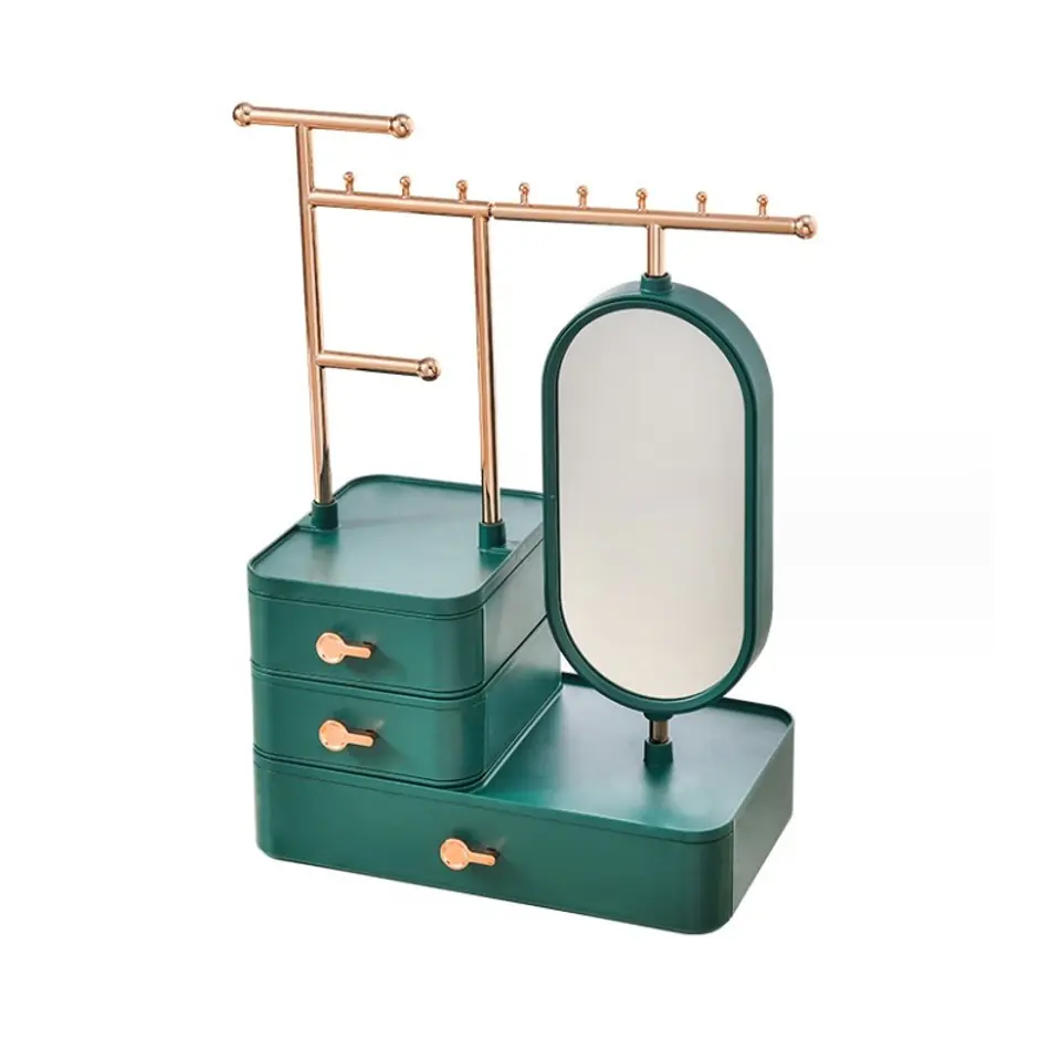 Organizer na biżuterię zielony szafeczka z lusterkiem i szufladkami PD60ZIE