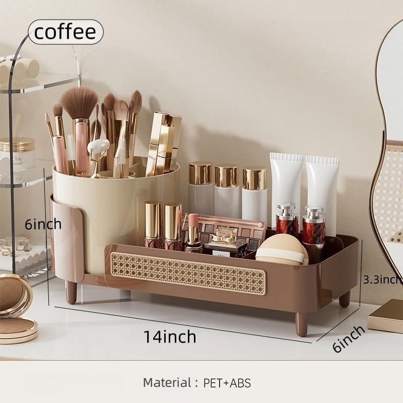 Organizer na pędzle, kosmetyki, plecionka wiedeńska obrotowy 34,5x14x15 cm CB75BR
