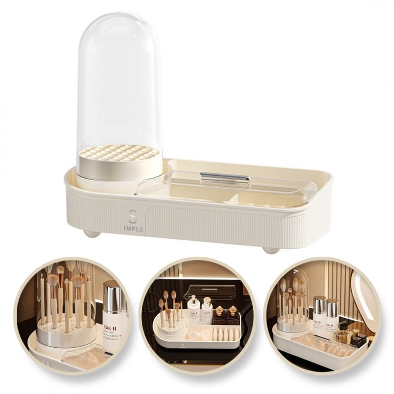 Organizer na pędzle i kosmetykiElegancki ryflowany organizer na kosmetyki z obrotowym pojemnikiem na pędzle. Specyfikacja: Idealne pojemniki do łazienki, garderoby czy sypialniOrganizer przeznaczony do przechowywania pędzli, kosmetykówPosiada specjalną silikonową teksturę do mycia pędzli pod kopułą.Obrotowy - obraca się o 360 stopniModny design- ryflowane ściankiMateriał: tworzywo sztuczne. Wymiary:33,5 x 28 x 14 cmWymiary opakowania:34cm 27cm x 13cmWaga:694g / 990g bruttoMateriał:Tworzywo sztuczne Jest wyjątkowo elegancki i będzie służył również jako dekoracja pomieszczenia.Pozwoli zachować ład i porządek w kosmetykach, czy podręcznych drobiazgach.