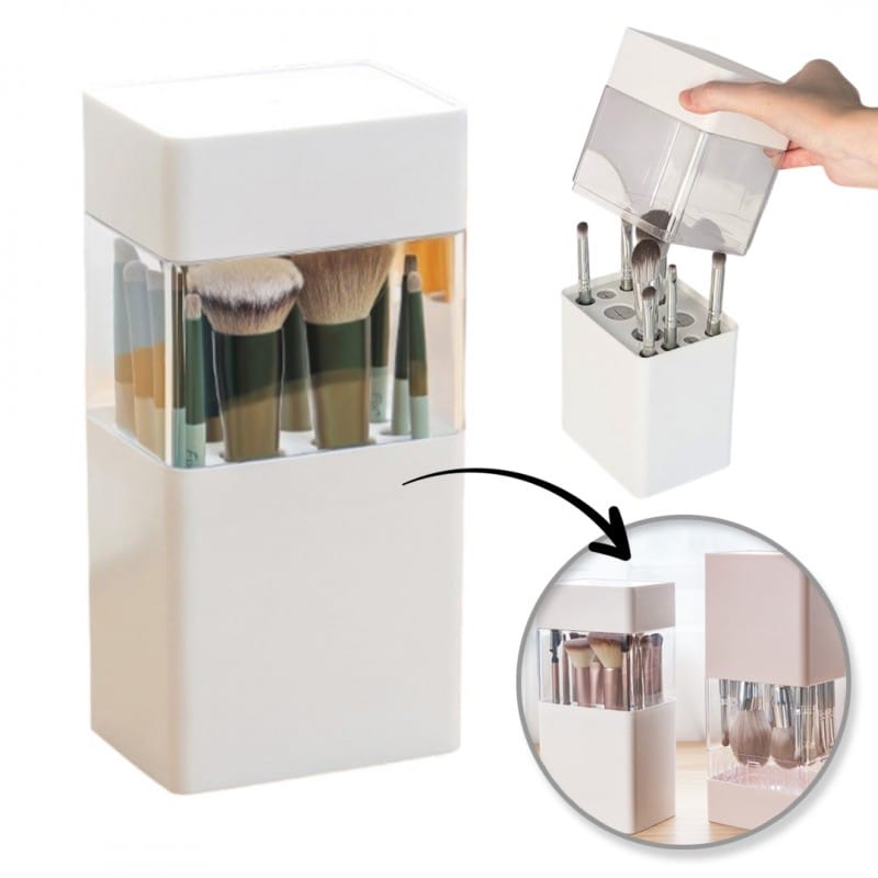 Organizer na pędzleElegancki organizer pojemnik na pędzle. Idealny do suszenia pędzli. Dzięki antypoślizgowej warstwie silikonowej pędzle nie wypadają po ustawieniu pojemnika do góry nogami.Przezroczysta konstrukcja okna zapewnia łatwy dostęp do pędzli, a otwory wentylacyjne przyspieszają etap suszenia. Wymiary:22 x 10,5 x 8cmWymiary opakowania:22,5cm x 11cm x 8,5cmWaga:300g netto / 360g bruttoMateriał:Tworzywo sztuczne Jest wyjątkowo elegancki i będzie służył również jako dekoracja pomieszczenia.Pozwoli zachować ład i porządek w kosmetykach, czy podręcznych drobiazgach.