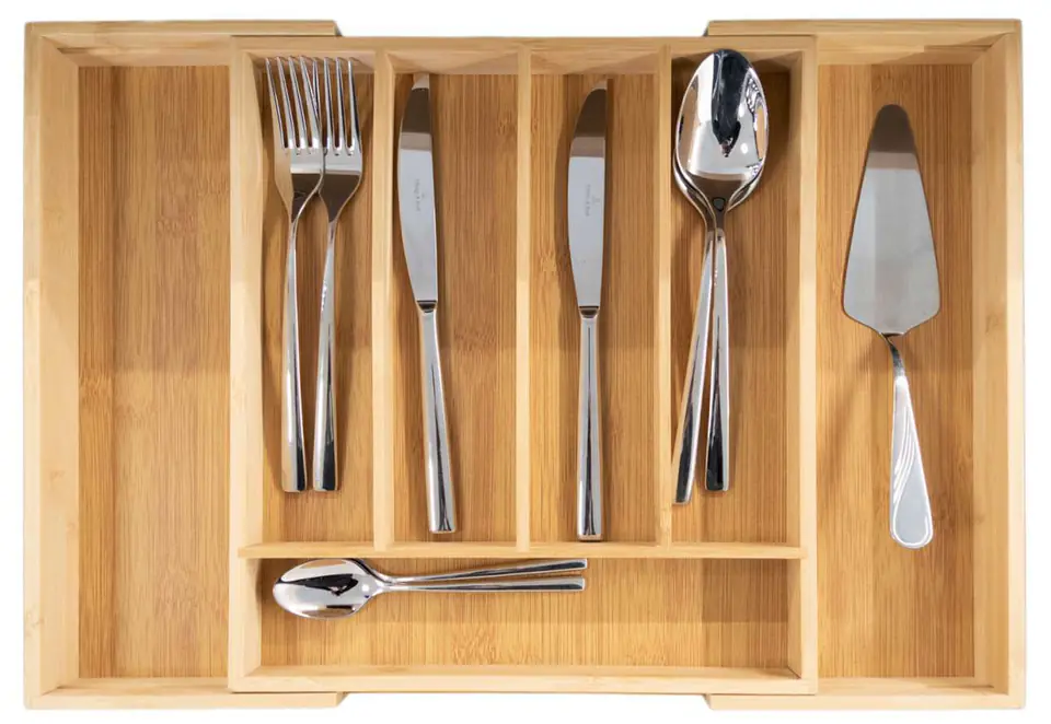 Organizer na sztućce wkład bambusowy JuanPrzeznaczenie: stojak na rośliny | Kolor: czarny Praktyczny organizer na sztućce wykonany z naturalnego bambusa. Organizer bambusowy jest bardzo pojemny. Ma aż 7 praktycznych przegród, pięć na sztućce i dwie dodatkowe na noże i większe przybory kuchenne.Organizer bambusowy jest rozkładany, boczne przegrody można w razie potrzeby wsunąć do środka i zaoszczędzić cenną przestrzeń. Dzięki niemu w szufladach kuchennych zapanuje ład i porządek. Jego kompaktowe wymiary sprawiają, że będzie pasował do większości standardowych szuflad. Cechy produktuWkład posiada 5 praktycznych przegródek , po rozłożeniu jest ich aż 7 Praktyczny i funkcjonalny wkład do szufladyWykonany w 100% z drewna bambusowegoŁatwo utrzymać go w czystościPasuje do większości szufladEstetyczne wykonanieWymiary produktuGłębokość: 32 cmSzerokość złożonego: 28,5 cmSzerokość po rozłożeniu: 45 cmWysokość: 5 cm Informacje dodatkowePrzedstawione kolory należy traktować poglądowo - mogą odbiegać od rzeczywistych ze względu na różne ustawienia monitorów oraz proces obróbki zdjęć. Rzeczywiste wymiary mogą się różnić od podanych wyżej. Tolerancja błędów może wynosić +/- 5%. Marka:GockowiakKod produktu:ORGANIZER SZTUĆCEKod EAN:5902340311936Kolor:naturalnyMateriał:bambusRozkładany:tak