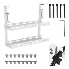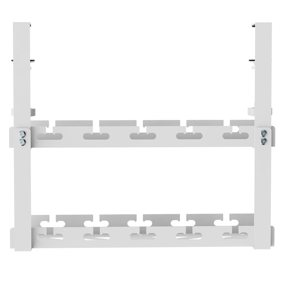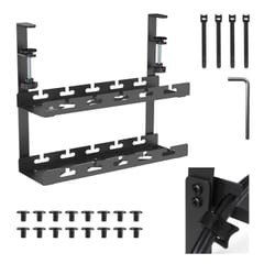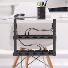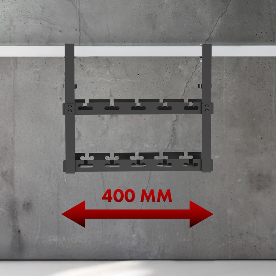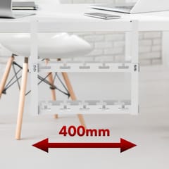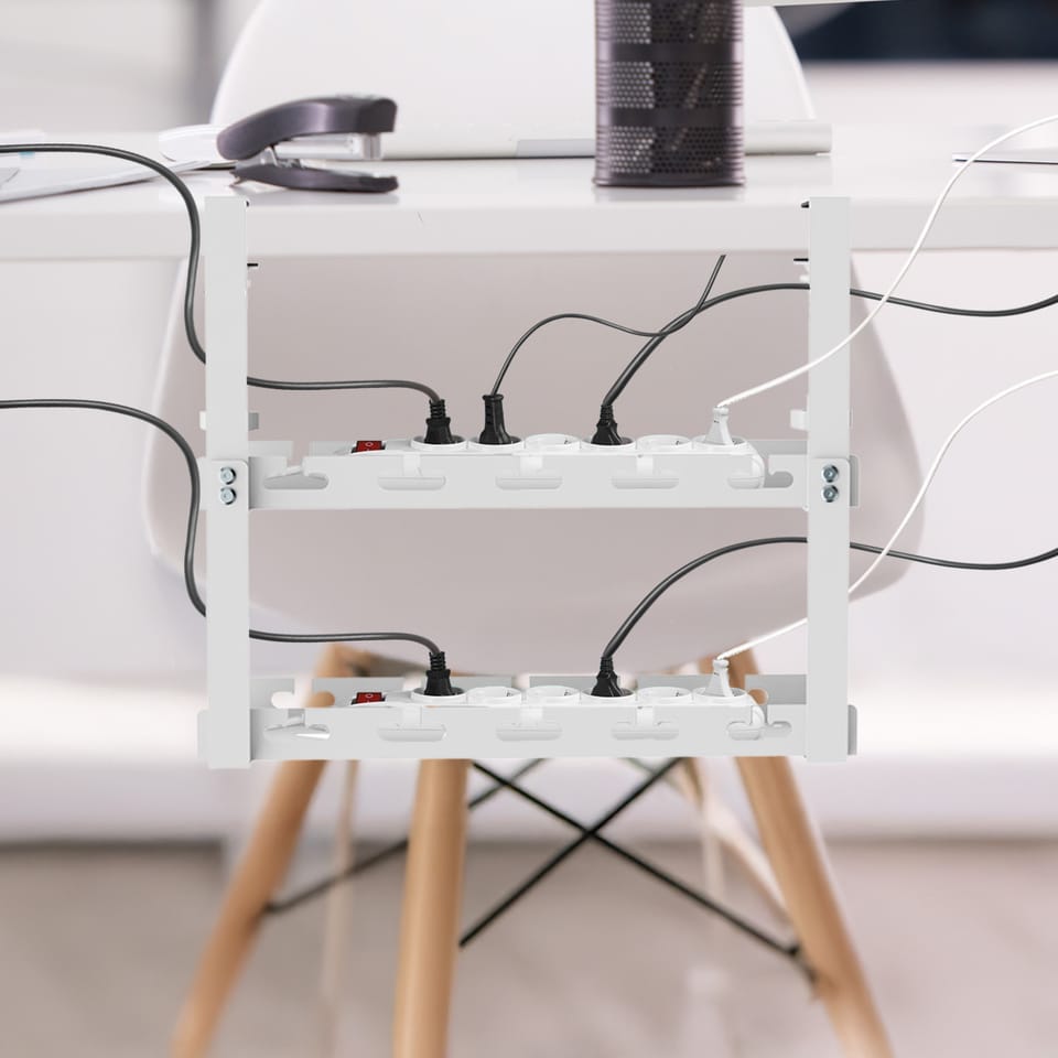 Dwupoziomowy organizer na listwę kablową montowany pod biurkiem to idealne rozwiązanie dla osób, które potrzebują jeszcze więcej przestrzeni na uporządkowanie przewodów i akcesoriów zasilających. Dzięki dwóm poziomom zyskujesz możliwość zamontowania nie tylko jednej, ale dwóch listw zasilających lub dodatkowych urządzeń, takich jak zasilacze, huby USB czy routery. Długość 40 cm zapewnia wystarczająco dużo miejsca na uporządkowanie nawet rozbudowanej infrastruktury kablowej. Montaż zaciskowy do blatu eliminuje konieczność wiercenia, co sprawia, że organizer jest łatwy w instalacji i nieinwazyjny dla mebli.