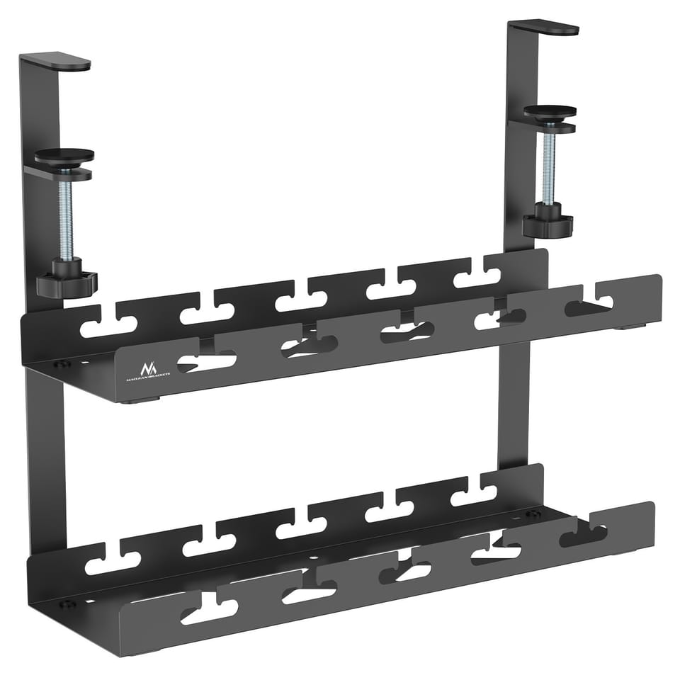 Konstrukcja została wyposażona w praktyczne otwory przelotowe, które umożliwiają prowadzenie kabli pomiędzy poziomami i w różnych kierunkach, co znacząco ułatwia zarządzanie przewodami i utrzymanie porządku. Solidna, metalowa rama gwarantuje trwałość, a estetyczne wykończenie dobrze komponuje się z nowoczesnymi przestrzeniami biurowymi i gamingowymi. Maclean MC-105 to funkcjonalne rozwiązanie dla wszystkich, którzy chcą poprawić ergonomię pracy i uniknąć bałaganu pod biurkiem.