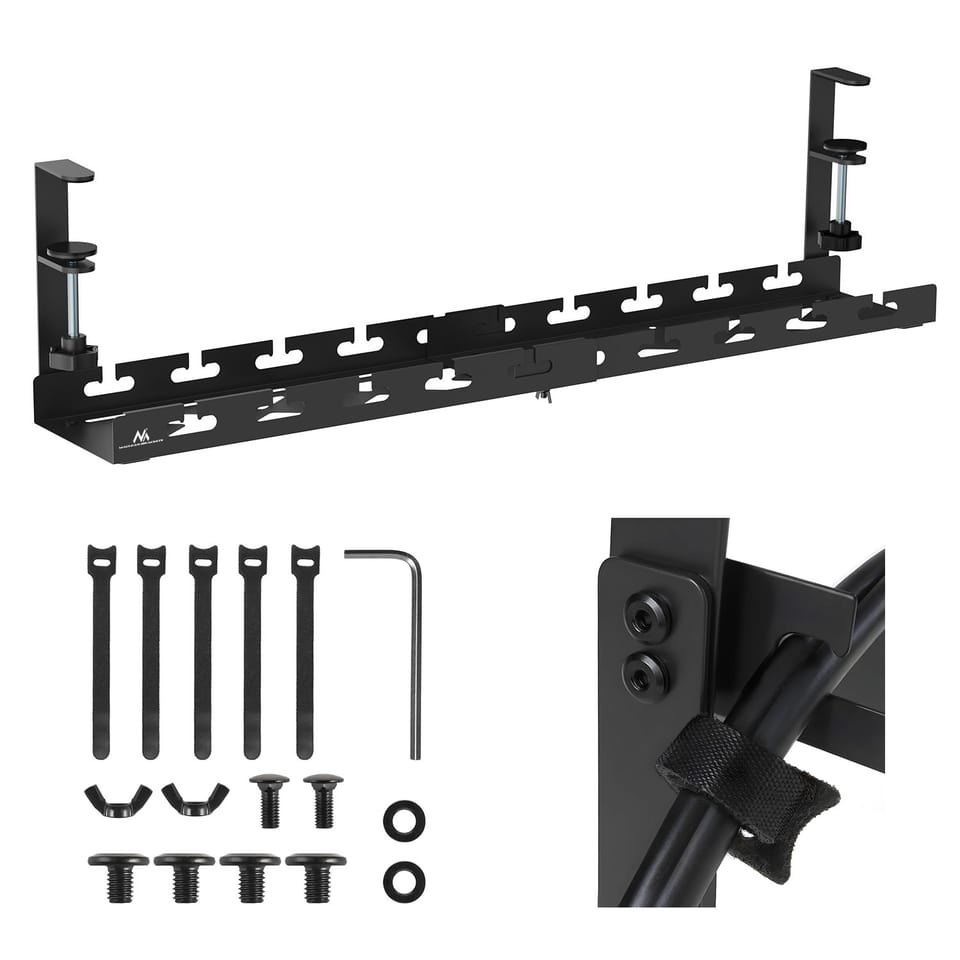 Zadbaj o porządek w przestrzeni roboczej dzięki organizerowi na listwę kablową montowanemu pod biurkiem. Ten praktyczny uchwyt z regulowaną długością od 433 do 728 mm pozwala dopasować się do różnych wymiarów blatów oraz długości listw zasilających. Umożliwia uporządkowanie przewodów i zamocowanie listwy zasilającej bez konieczności wiercenia czy trwałej ingerencji w mebel. Dzięki zaciskowemu systemowi montażu można go łatwo przymocować do blatu, a w razie potrzeby również szybko zdemontować lub przemieścić. Organizer świetnie sprawdzi się w domowym biurze, pokoju gracza lub w miejscu pracy.