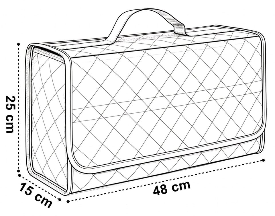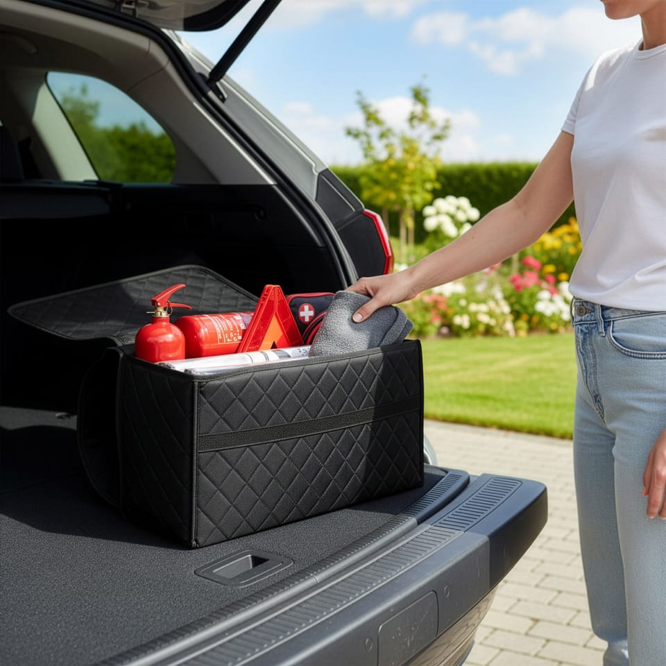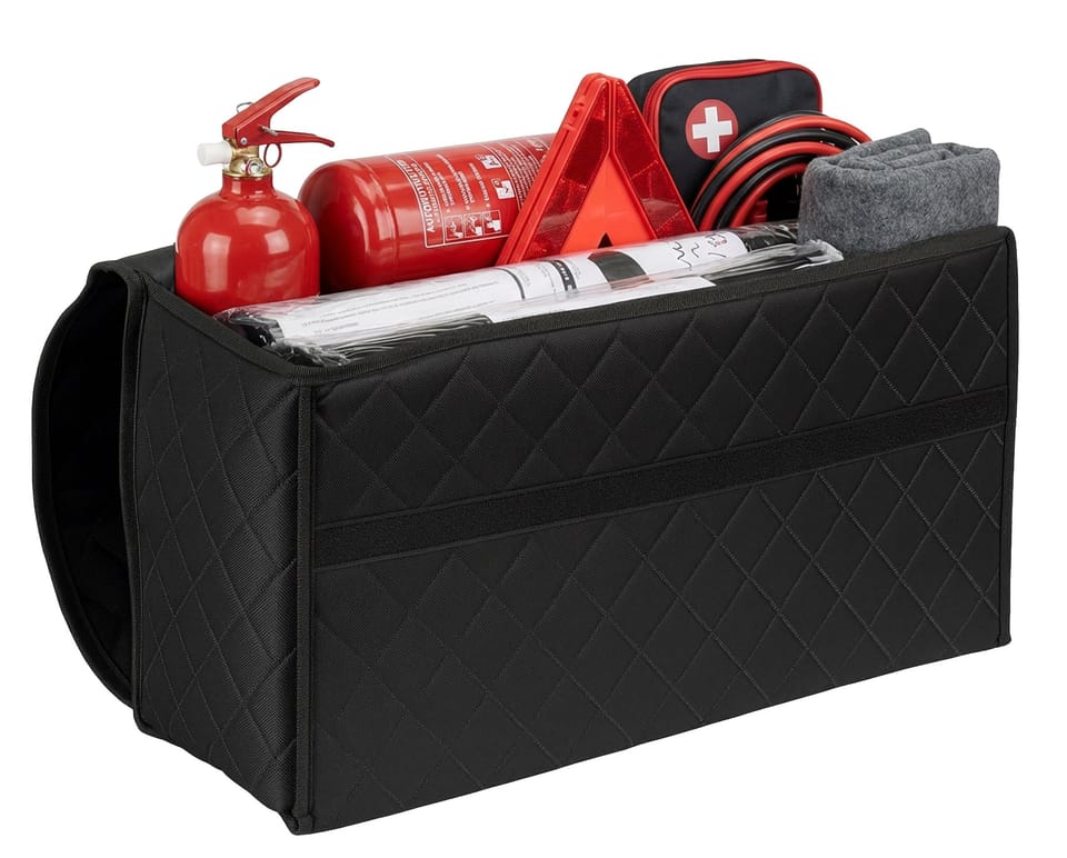 Organizer samochodowy do bagażnika FOREST⭐️ Duża pojedyncza komora⭐️ Wykonany z solidnego materiału Oxford⭐️ Zamknięcie na mocny rzep⭐️ Sztywna i stabilna konstrukcja⭐️ Zakup od producenta ✨Organizer samochodowy Forest – Porządek i bezpieczeństwo w Twoim bagażniku✨Organizer samochodowy Forest to praktyczny sposób na zachowanie ładu w bagażniku oraz zwiększenie komfortu i bezpieczeństwa podczas każdej podróży. Solidna, usztywniona konstrukcja i pojemne wnętrze umożliwiają wygodne uporządkowanie niezbędnych akcesoriów – takich jak gaśnica, trójkąt ostrzegawczy, apteczka czy kable rozruchowe – tak, aby zawsze były pod ręką. Organizer zapobiega przesuwaniu się przedmiotów w trakcie jazdy, chroniąc tapicerkę bagażnika przed zabrudzeniami i uszkodzeniami. To funkcjonalne rozwiązanie, które eliminuje bałagan, oszczędza czas i zwiększa bezpieczeństwo. Idealny dla kierowców ceniących wygodę, praktyczność i porządek na co dzień.Cechy:Materiał: Tkanina OxfordKolor: czarny (pikowany)Pojedyncza komoraZamykanie: rzepUchwyt do wygodnego przenoszenia Wymiary:Szerokość: 48 cmGłębokość: 15 cmWysokość: 25 cm Informacje dodatkowePrzedstawione kolory należy traktować poglądowo - mogą odbiegać od rzeczywistych ze względu na różne ustawienia monitorów oraz proces obróbki zdjęć. Rzeczywiste wymiary mogą się różnić od podanych wyżej. Tolerancja błędów może wynosić +/- 5%.Marka:4WheelzKod EAN:5902340332306Kolor:czarnyWysokość:25 cmSzerokość:48 cmGłębokość:15 cm
