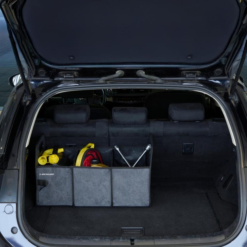 Porządek w bagażniku? To możliwe! Z organizerem DUNLOP zakupy, akcesoria i drobiazgi w końcu przestają jeździć po bagażniku razem z Tobą.