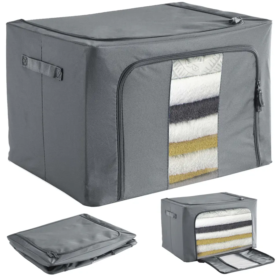 Organizer składany EVAN szaryModel: Evan | Kolor: szary Organizer na pościel Evan to świetne rozwiązanie na zorganizowanie porządku w Twojej garderobie czy szafie. Doskonale sprawdzi się do przechowywania ręczników, pościeli i każdego rodzaju odzieży. Wykonany jest z materiałów najwyższej jakości, z zachowaniem dbałości o każdy detal. Organizer na odzież Evan posiada stalowy, solidny stelaż i usztywnienie na spodzie, dzięki czemu jest stabilny i wytrzymały, a ubrania chronione są przed zagnieceniami. Modułowa konstrukcja pozwala ustawiać kolejne organizery na sobie, dzięki czemu możemy tworzyć pionowe słupki wg własnych upodobań. Dodatkowo przednia ścianka posiada transparentne okienko, dzięki któremu szybko dostrzeżemy rzecz, której szukamy. Torba na ubrania Evan wykonana jest solidnego materiału Oxford 600D, dzięki czemu jest odporna na działanie wilgoci, chroni przed molami, kurzem, brudem i brzydkim zapachem. Evan to doskonały organizer na ubrania. Jest solidnie wykonany z wytrzymałego materiału, posiada stalowy stelaż, mocne zamki błyskawiczne, wygodne rączki do przenoszenia i okienko identyfikujące odzież. To praktyczne i estetyczne rozwiązanie do Twojej szafy. Dzięki dużej pojemności 60 litrów pojemnik jest w stanie zmieścić dużą ilość odzieży, ręczników czy kompletów pościeli. Zalety:Najwyższa jakość materiałówWytrzymały materiał Oxford 600DOdporność na wilgoć, mole, kurz, brud i brzydkie zapachyStabilna solidna konstrukcjaStalowy stelażDodatkowe usztywnienie od spoduModułowa konstrukcjaMożliwość sztaplowaniaSolidne zamki błyskawiczneDoskonały do odzieży, ręczników, pościeliEstetycznie wykonanyPrzezroczyste okienko identyfikacyjneWygodne rączki do przenoszeniaDuża pojemność - aż 60 litrów SpecyfikacjaMateriał: Oxford 600DKonstrukcja: stalUsztywnienie na spodzie: tworzywo sztuczneZamki błyskawiczne: takOkienko identyfikacyjne: takRączki do przenoszenia: takPojemność: 60 litrówWaga: 0,85 kg WymiaryWysokość: 32 cmSzerokość: 50 cmGłębokość: 40 cm Informacje dodatkowePrzedstawione kolory należy traktować poglądowo - mogą odbiegać od rzeczywistych ze względu na różne ustawienia monitorów oraz proces obróbki zdjęć. Rzeczywiste wymiary mogą się różnić od podanych wyżej. Tolerancja błędów może wynosić +/- 5%. Marka:GockowiakKod EAN:327449MGKolor:szaryWysokość: 32 cmSzerokość:50 cmGłębokość:40 cmMateriał:Oxford 600DPrzeznaczenie:na pościel, koce, narzuty itp.Do samodzielnego montażu:tak