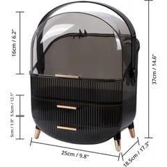 Praktyczny organizer na kosmetyki, biżuterię lub inne akcesoria dla każdej kobiety Jest piękny, elegancki i bardzo pojemny.Oprócz tego jest wyjątkowo piękny i będzie służył jako dekoracja pomieszczenia.Charakteryzuje się pojemnymi szufladkami oraz dużą gablotką na perfumy, balsamy lub kremy. Pozwoli zachować ład i porządek w podręcznych drobiazgach.Organizer wykonany został z akrylu w modnym kolorze, dodatkowo elementy w kolorze złotym sprawiają, że produkt prezentuje się ekskluzywnie.Przeźroczyste wieko pozwala z łatwością odnaleźć potrzebny kosmetyk. Cechy produktu:- Wykonana z wysokiej jakości plastiku- Uporządkuje Twoje kosmetyki- Ekskluzywny wygląd- Solidne wykonanie- Dwie szufladki- Zajmuje mało miejsca- Pomieści wiele najpotrzebniejszych drobiazgów Wymiary:37 x 28,6 x 18,5 cmWymiary kartonu:40cm x 30cm x 23cmMateriał:AkrylWaga:1393g netto / 1840 g brutto Świetnie sprawdzi się w formie prezentu.