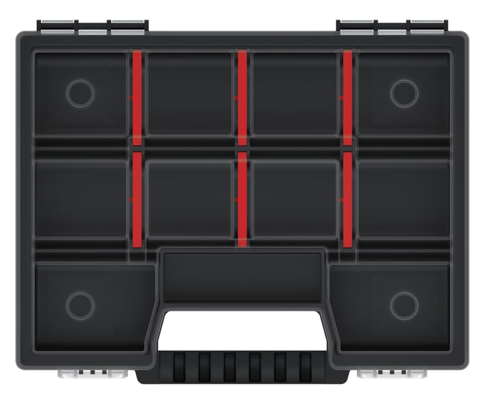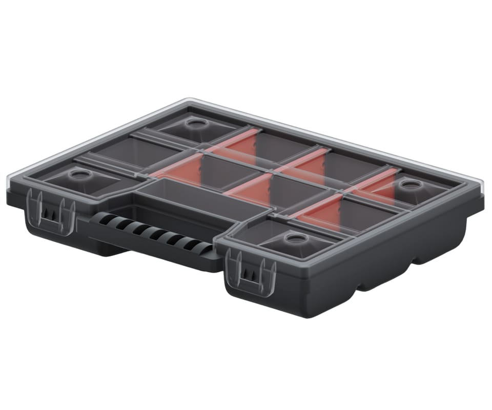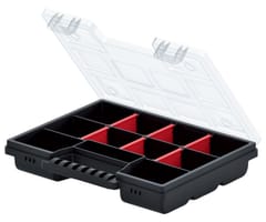 | Wybrane cechy: | 6 wyjmowanych przegród Wytrzymałe zapięcia Przezroczysta pokrywa pozwala szybko zlokalizować szukany element bez konieczności otwierania organizera, Korpus wykonany z mieszanki polimerów o podwyższonej wytrzymałości odporność na uderzenia Ergonomiczny uchwyt Estetyczne i solidne wykonanie |