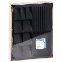 - Wykonany z wytrzymałych materiałów - Wykonany z najwyższej jakości tworzywa w czarnym kolorze. Wkład do szuflady jest wytrzymały i solidny.