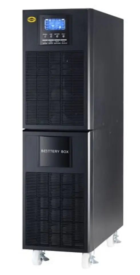 - Typ i ilość: 16 szt. 12V 7AhNapięcie ładowania (konserwujące): 218.4VDC ± 1%Prąd ładowania: 1A (2A max)Komunikaty na wyświetlaczu LCD Tryb pracy, poziom obciążenia, poziom naładowania akumulatorów, napięcie wejściowe/wyjściowe, czas pracy bateryjnej, ostrzeżenia i błędy.