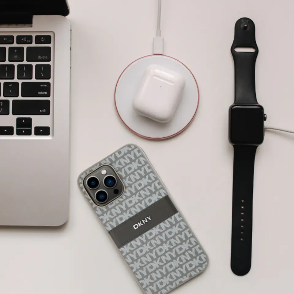 Cała kolekcja kusi ekskluzywnością i wyrafinowaniem. Inicjały domu mody DKNY ułożone na całej powierzchni pokrowca tworzą niezwykle wyrazistą kompozycję, dzięki czemu możesz liczyć na to, że zawsze będziesz zwracać uwagę, a Twój telefon stanie się Twoją piękną ozdobą.