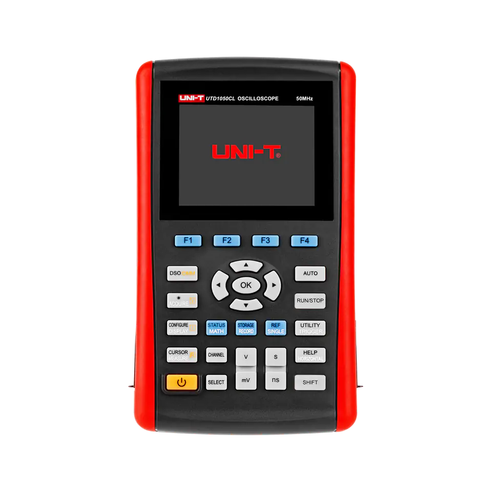 UTD1050CL to kieszonkowy oscyloskop cyfrowy 50MHz oraz multimetr w jednym. Zaletą urządzenia jest kolorowy wyświetlacz LCD o dużym kontraście. Dzięki wyświetlaniu 3999 możliwe są zapisy pomiarów szerokiego zakresu napięć - aż do 200V/działkę, a także natężenia prądu, rezystancji, diod, pojemności oraz testu ciągłości obwodu. Funkcjonalność urządzenia zwiększa także unikalny zapis przebiegów oraz przechowywanie i przywoływanie ich. Złącze USB pozwala na szybki zapis sygnałów lub transmisję i zapis na podłączonym komputerze. Wbudowany akumulator daje gwarancję 8 godzin nieprzerwanej pracy, którą można także kontynuować po podłączeniu urządzenia do zasilacza.