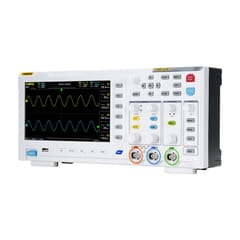 Wysoka częstotliwość próbkowania 1GSa/s oraz szerokość pasma 100 MHz umożliwiają szczegółową analizę sygnałów analogowych i cyfrowych. Dzięki temu urządzenie pozwala wychwycić nawet krótkotrwałe anomalie w przebiegu. Tryby wyzwalania obejmują Auto, Single oraz Normal, co pozwala na wychwycenie zarówno impulsów zakłóceniowych, jak i regularnych sygnałów analogowych, np. sinusoidalnych.