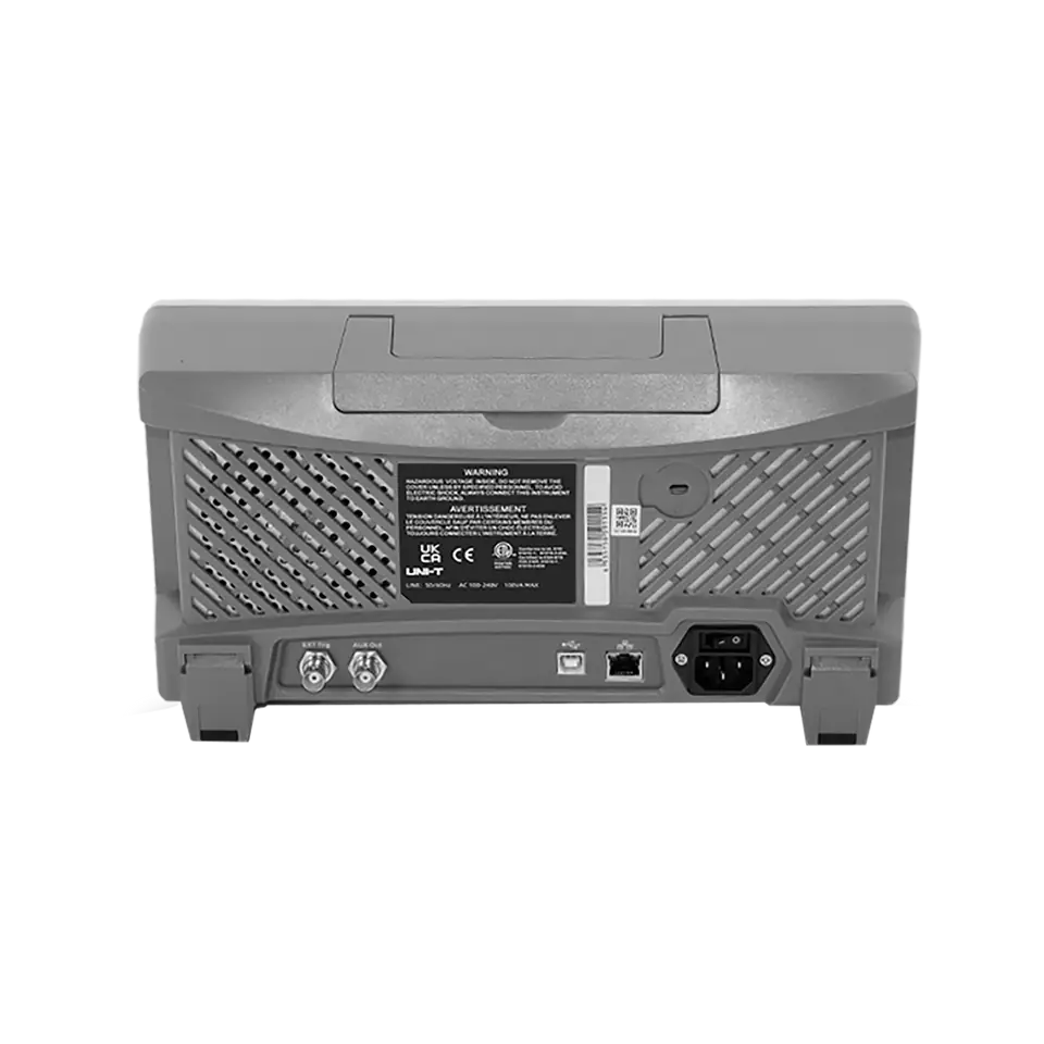 -----------PARAMETRY GŁÓWNE-----------Szerokość pasma analogowego: 100 MHzCzas narastania: Liczba kanałów: 2Częstotliwość próbkowania: 1 GS/sGłębokość pamięci: 56 Mpts (1 kanał)Szybkość przechwytywania przebiegu: 200 000 wfms/sPodstawa czasu: 5 ns/div~50 s/divImpedancja wejściowa: (1MOhm ±2%) II (20 pF ±3 pF)Czułość odchylenia pionowego: 1 mV/div~20 V/div (1M?)Dokładność wzmocnienia sygnału: Zapis przebiegów: 65 000 ramekSposoby wyzwalania: Edge, pulse width, runt, window, N-edge, delay, timeout, duration, setup/hold, slope, video, codeOpcje dekodowania magistrali szeregowych: RS232/UART, I2COperacje na przebiegach: A+B, A-B, AxB, A/B, FFT, operacje logiczne, zaawansowanePomiar automatyczny 27 parametrów: Peak-Peak, Amplitude, Maximum, Minimum, Top, Bottom, Mean, Middle, Cycle Mean,RMS, Cycle RMS, Area, Cycle Area, Overshoot, Preshoot, Frequency, Cycle, Rise Time,Fall Time, Positive Pulse, Negative Pulse, Positive Duty Ratio, Negative Duty Ratio,Delay A->B (Rising edge), Delay A->B (Falling edge), Delay B->A (Rising edge), Delay B->A (Falling edge). Typy wyświetlenia wyników: 5 wyników jednocześnieStatystyki pomiarów: Average, Max, Min, odchylenie standardowe, numer pomiaruOkno częstotliwości: 6 bitówInterfejsy: USB-Host, USB-Device, LAN, AUX (Trig Out, Pass/Fail)-----------CECHY OGÓLNE-----------Zasilanie: 100V~240VAC, 50Hz/60HzWyświetlacz: 8” TFT LCD, WVGA (800×480 px) Waga: 4.5kgWymiary: 370 x 185 x 115 mm