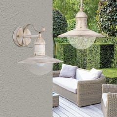 Cechy- Oprawa w kolorze bieli antycznej wykonana z wytrzymałego metalu- Lampa przeznaczona jest do żarówek typu E27 o mocy maksymalnej do 60W- Kolor klosza: przeźroczysty- Materiał klosza: tworzywo sztuczne- Idealne rozwiązanie oświetlenia na zadaszonym tarasie- Stopień ochrony: IP44