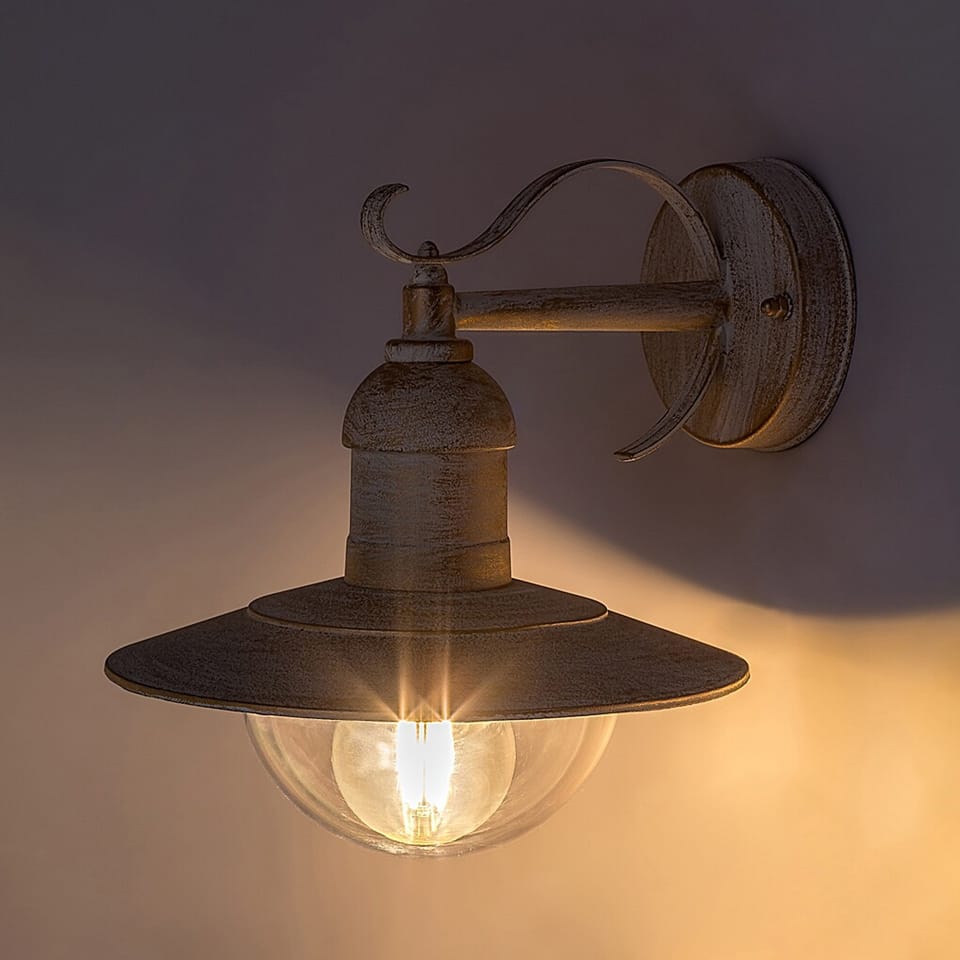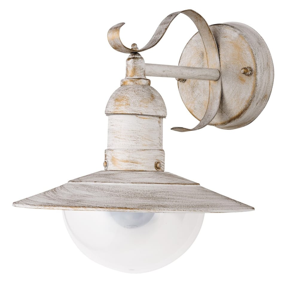 Specyfikacja- Kategoria produktu: lampa ogrodowa- Typ: zewnętrzne lampy ścienne- Styl: śródziemnomorski- Pomieszczenie: taras, ściana zewnętrzna- Stopień ochrony: IP44- Kolor lampy: biały antyk- Materiał lampy: metal- Kolor klosza: przeźroczysty- Materiał klosza: tworzywo sztuczne- Liczba gniazd: 1- Typ gniazda: E27- Moc oprawy oświetleniowej: max 60W- Stosowane napięcie: 230V, 50Hz- Odległość od ściany: 280.0 mm- Szerowokość: 240.0 mm- Głębokość: 280.0 mm- Waga brutto: 1.07 kg- Numer klosza: 19050- Klasa ochronności: I
