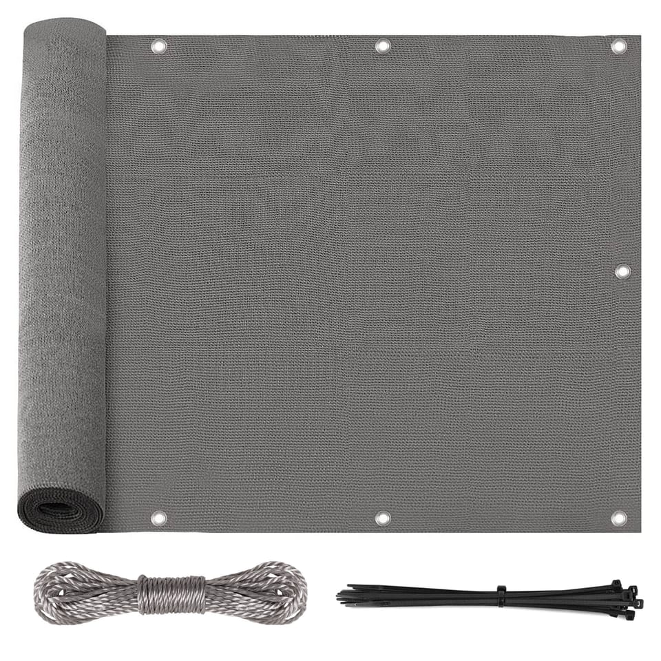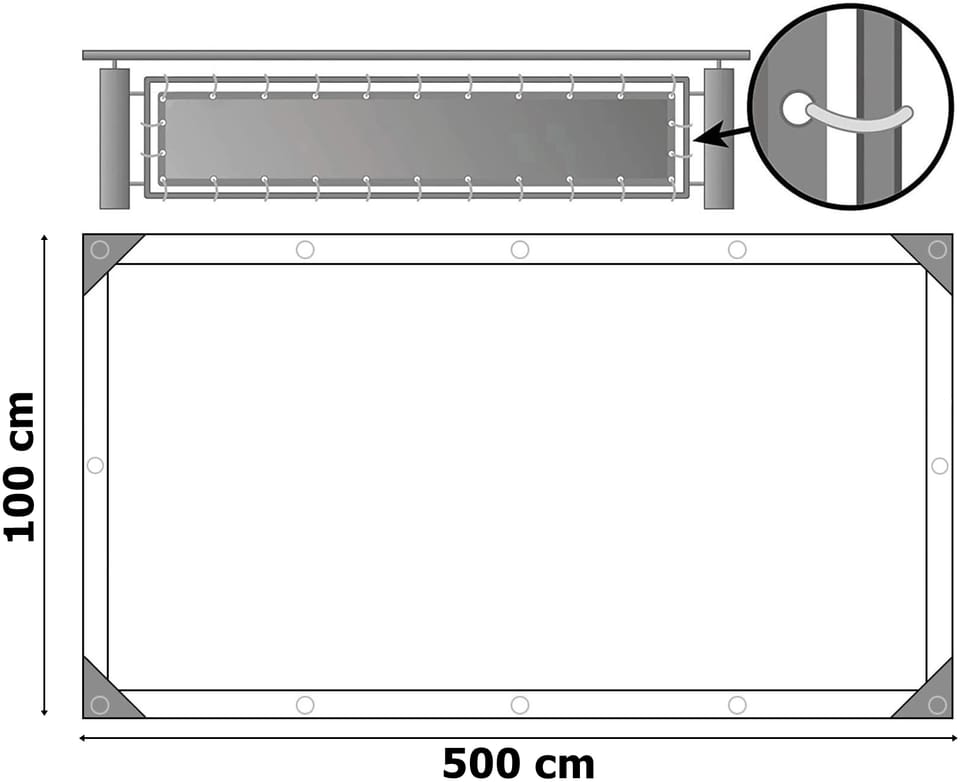 Osłona mata balkonowa szara 1x5 mPrzeznaczenie: balkon, taras, ogrodzenie | Kolory: szary Osłona na balkon zapewnia prywatność i cień, dzięki czemu możesz poczuć się lepiej.Tkanina cieniująca ogrodowa wykonana jest z wysokiej jakości materiału HDPE, który jest odporny na działanie promieni UV i odporny na działanie temperatury. Materiał zapewnia wysokie zacienienie na poziomie 95% oraz optymalną ochronę przed wiatrem przy jednoczesnym zachowaniu oddychalności. Dzięki dołączonym opaskom zaciskowym oraz sznurkowi osłonę można bardzo łatwo zamontować.Osłona nadaje się do różnych zastosowań np. jako osłona ogrodzenia, osłona balkonu, ochrona tarasu, zacienienie szklarni oraz wiele innych.Mata cieniująca przekonuje najlepszym wykonaniem z wytrzymałych materiałów i dzięki temu nadaje się do niezawodnego użytkowania przez wiele lat.Cechy produktuMateriał: HDPEFiltr: UVGramatura: 180g/m2Współczynnik zacienienia: 95%Zestaw montażowy: sznurek oraz opaski zaciskowe w zestawie Wymiary produktuDługość: 500 cmSzerokość: 100 cmRozstaw otworów poziomych: ok. 50 cmRozstaw otworów pionowych: ok. 30 cmGramatura: 180 g/m² Informacje dodatkowePrzedstawione kolory należy traktować poglądowo - mogą odbiegać od rzeczywistych ze względu na różne ustawienia monitorów oraz proces obróbki zdjęć. Rzeczywiste wymiary mogą się różnić od podanych wyżej. Tolerancja błędów może wynosić +/- 5%.Marka:GockowiakKod EAN:5905523064186Kolor:szaryWysokość: 100 cmSzerokość:500 cmMateriał:HDPEWspółczynnik zacienienia:95%