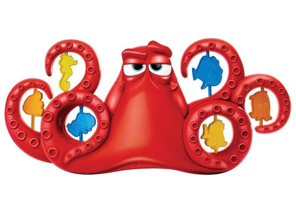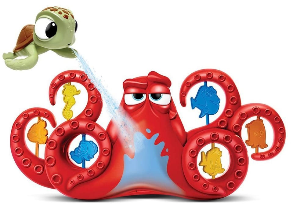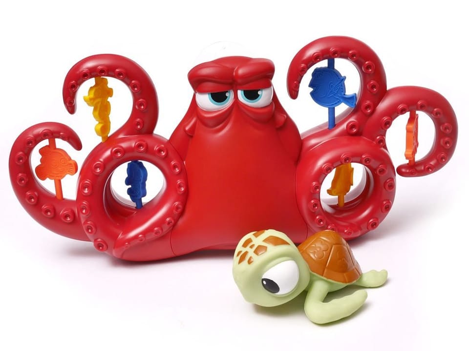 Ośmiornica HANK to jeden z wesołych bohaterów bajki Gdzie jest Dory. Od dziś może stać się również towarzyszem kąpieli każdego dziecka. To zabawka zarówno dla każdego małego wielbiciela pluskania się w wannie, jak i malucha, który kąpać się nie lubi. Dzięki niej każda kąpiel będzie zabawą, a nie przykrym obowiązkiem.
