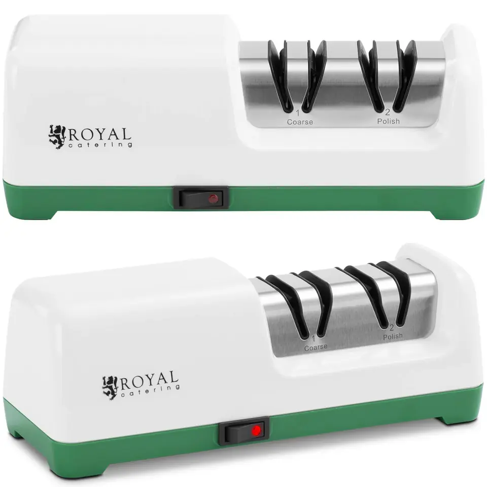 Elektryczna diamentowa ostrzałka do noży marki Royal Catering sprawdzi się w profesjonalnej, jak i w domowej kuchni. Profesjonalna ostrzałka z silnikiem 20 W przywróci wydajność cięcia noża w 2 etapach: wstępne ostrzenie zgrubne i polerowanie. Urządzenie jest łatwe w obsłudze, a gumowy spód ostrzałki utrzymuje ją bezpiecznie na blacie. Solidna obudowa ze stali nierdzewnej jest łatwa w utrzymaniu czystości, a magnez zamocowany na spodzie skutecznie chwyta drobne ścinki.