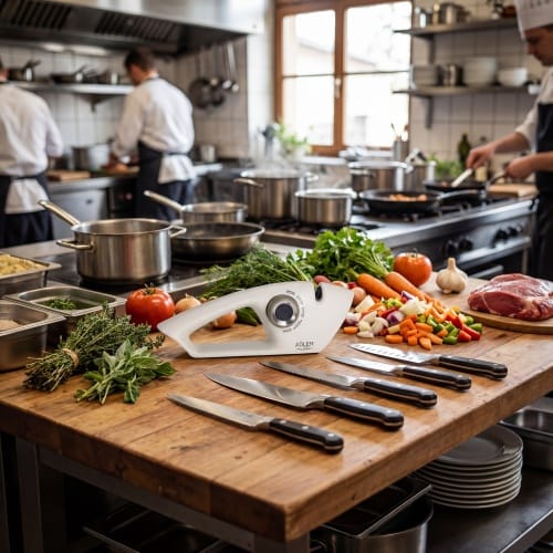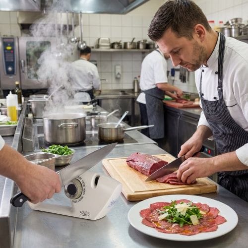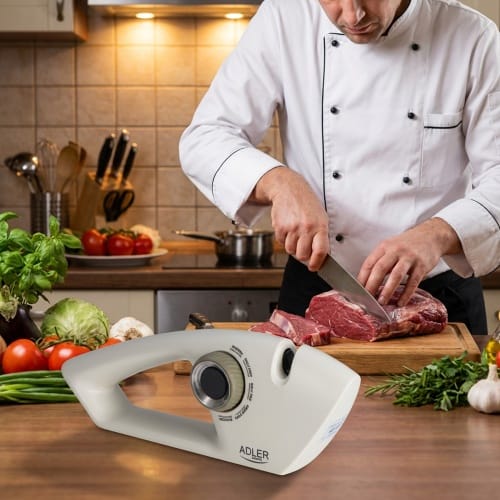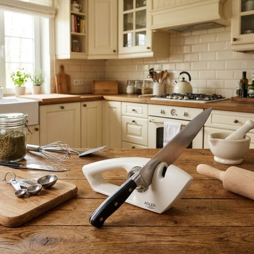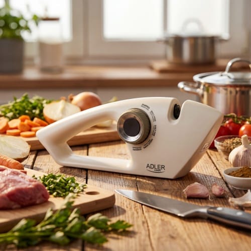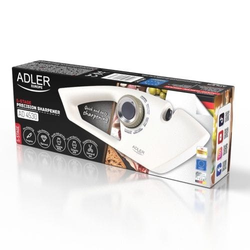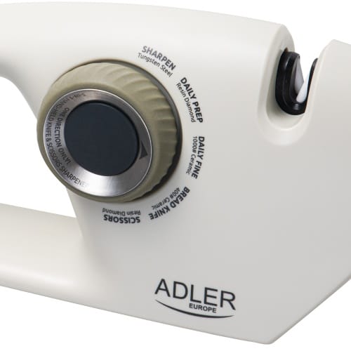 5-stopniowa ostrzałka precyzyjna AD 4530 – Jedno narzędzie, pełna kontrola• Węglik wolframu – Wstępne ostrzenie tępych noży• Diament – Do codziennego ostrzenia i utrzymania krawędzi• Ceramika 1000 – Delikatne szlifowanie na co dzień• Ceramika 400 – Specjalnie do noży ząbkowanych (np. do chleba)• Gniazdo diamentowe do nożyczek – Łatwe ostrzenie nożyczekWybierz poziom ostrzenia za pomocą wygodnego pokrytego silikonem pokrętła. Zaprojektowana z myślą o wszechstronności i precyzji. Wymiary urządzenia: 250 x 45 x 90 mm