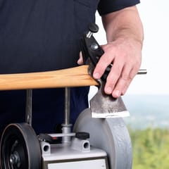 wyposażony w przystawkę centrującą do ostrzenia noży krótkich KJ-45 i przystawkę do ostrzenia siekier AX-40, aby Twoje narzędzia były zawsze gotowe do pracy