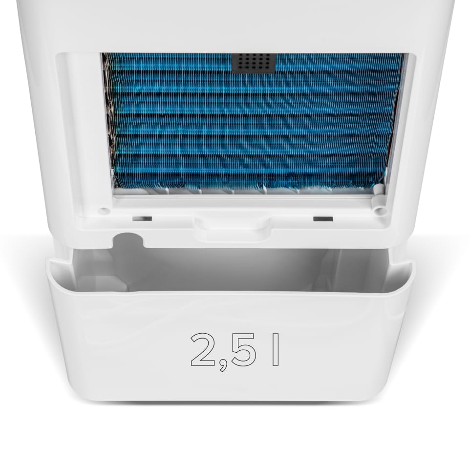 Zastanawiasz się, jaki osuszacz powietrza wybrać do mieszkania? Ten model został stworzony z myślą o powierzchniach od 25 do 40 m2. Jako pochłaniacz wilgoci do pokoju lub osuszacz do pomieszczeń, działa skutecznie tam, gdzie najbardziej tego potrzebujesz ? w salonie, sypialni, łazience lub nawet w garderobie.