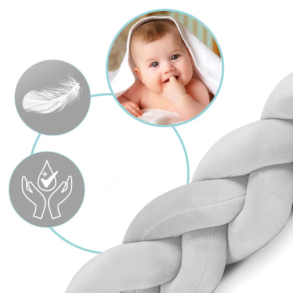 • chroni dziecko przed twardymi szczebelkami łóżeczka,