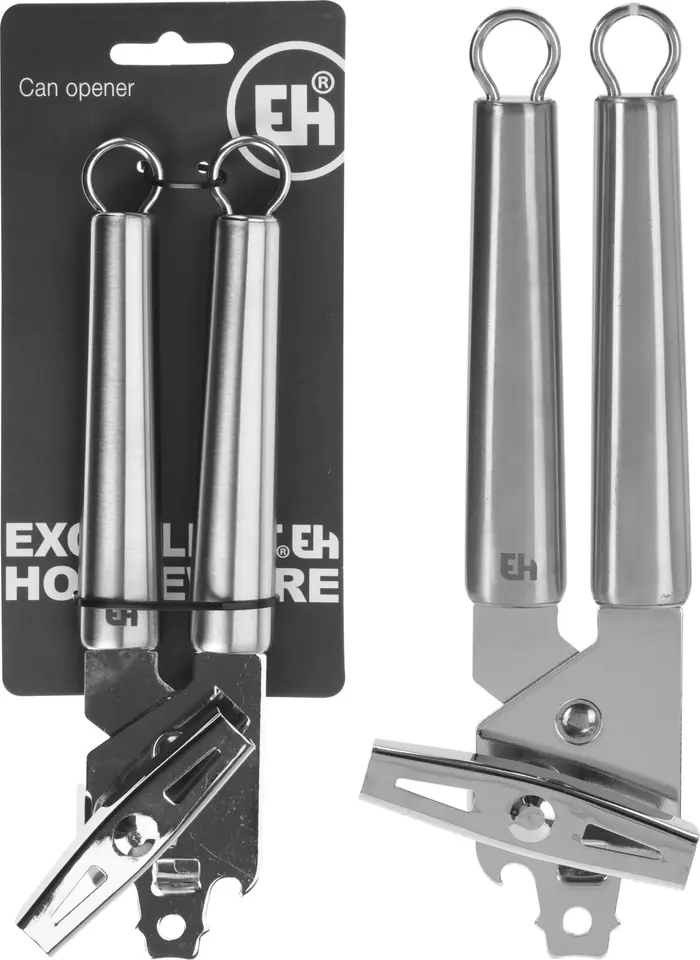 Otwieracz do Puszek HV495171 z Wytrzymałym Designem . MondezNie musisz już się martwić o trudności w otwieraniu puszek! Nasz otwieracz do puszek HV495171 jest stworzony z myślą o wygodzie i łatwości użytkowania, oferując solidną konstrukcję, która poradzi sobie z każdym wyzwaniem.Kluczowe cechyErgonomiczny kształt uchwytów zapewnia komfortowe i pewne trzymanie, minimalizując wysiłek podczas otwierania.Trwały materiał ze stali nierdzewnej gwarantuje długowieczność i łatwość w czyszczeniu.Niezwykle lekki i kompaktowy, idealny do przechowywania w kuchni lub zabrania ze sobą w podróż.Zintegrowany uchwyt do zawieszenia . zawsze pod ręką, gotowy do użycia.Nowoczesny, minimalistyczny design pasuje do każdej kuchennej aranżacji.Dlaczego warto wybrać MondezOtwieracz HV495171 wyróżnia się funkcjonalnością oraz stylowym wyglądem. Jego nowoczesny design ze stali nierdzewnej sprawia, że nie tylko ułatwia codzienne zadania, ale również dodaje elegancji Twojej kuchni. Każde użycie to satysfakcjonujące doświadczenie, które łączy jakość z estetyką.Zastosowanie i pielęgnacjaAby utrzymać otwieracz w najlepszym stanie, po użyciu umyj go pod ciepłą wodą z mydłem. Można go również myć w zmywarce. Dzięki stali nierdzewnej jest odporny na rdzewienie oraz zarysowania.Dane techniczneWymiary: długość 45 cm, wysokość 9,25 cmMateriał: stal nierdzewnaKolor: stalowy, metalicznyKompatybilność: uniwersalny do większości puszekPojemność: brak informacji, produkt do otwierania puszek