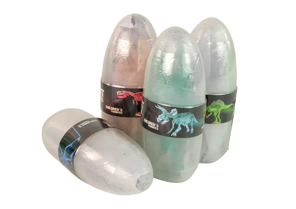 Wewnątrz znajduje się losowy model krystalicznego szkieletu dinozaura, którego składanie dostarcza dodatkowych atrakcji. To zabawka, która ćwiczy umiejętności motoryczne, koordynację ruchową i koncentrację.